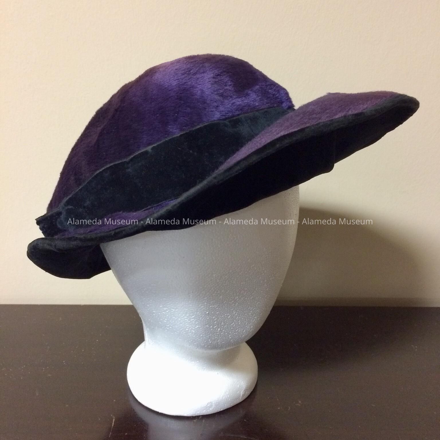 Purple fur velvet hat with black band, early 1920sEntry/Object ID