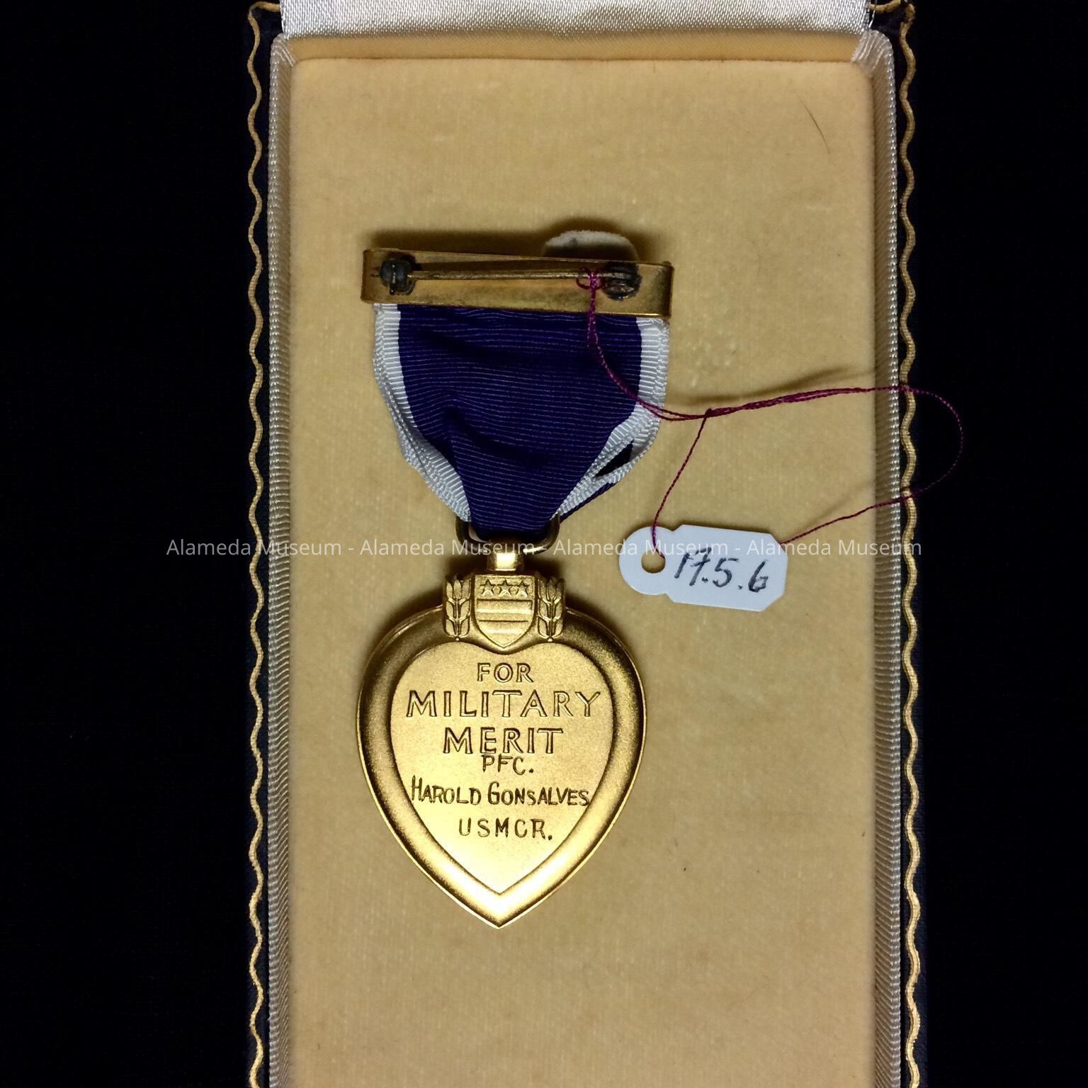Purple Heart Medal awarded to USMC Pfc. Harold Gonsalves, c. 1945Entry/Object ID