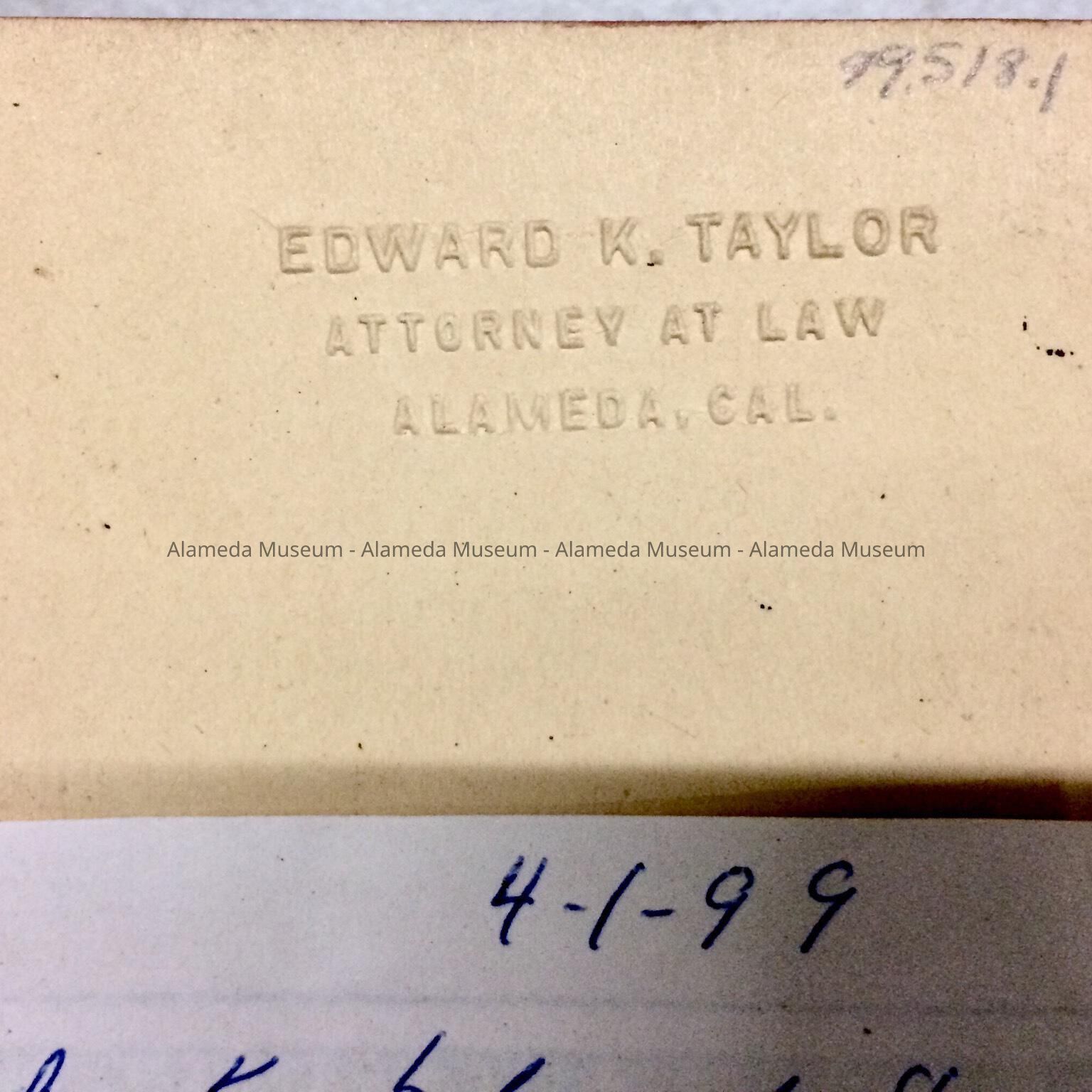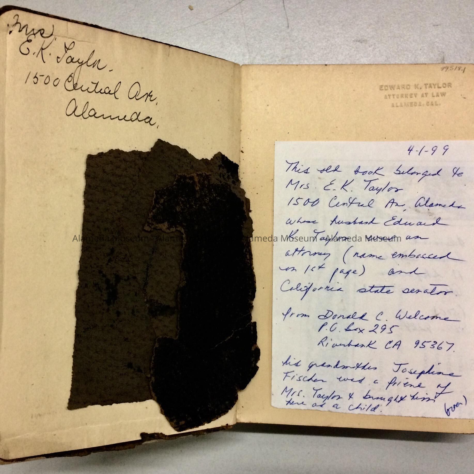History of Object: Reference book titled, "Putnam's HandBook of Universal History,” belonged to Edward K. Taylor, Attorney at Law and he was the first mayor of Alameda, 1907.