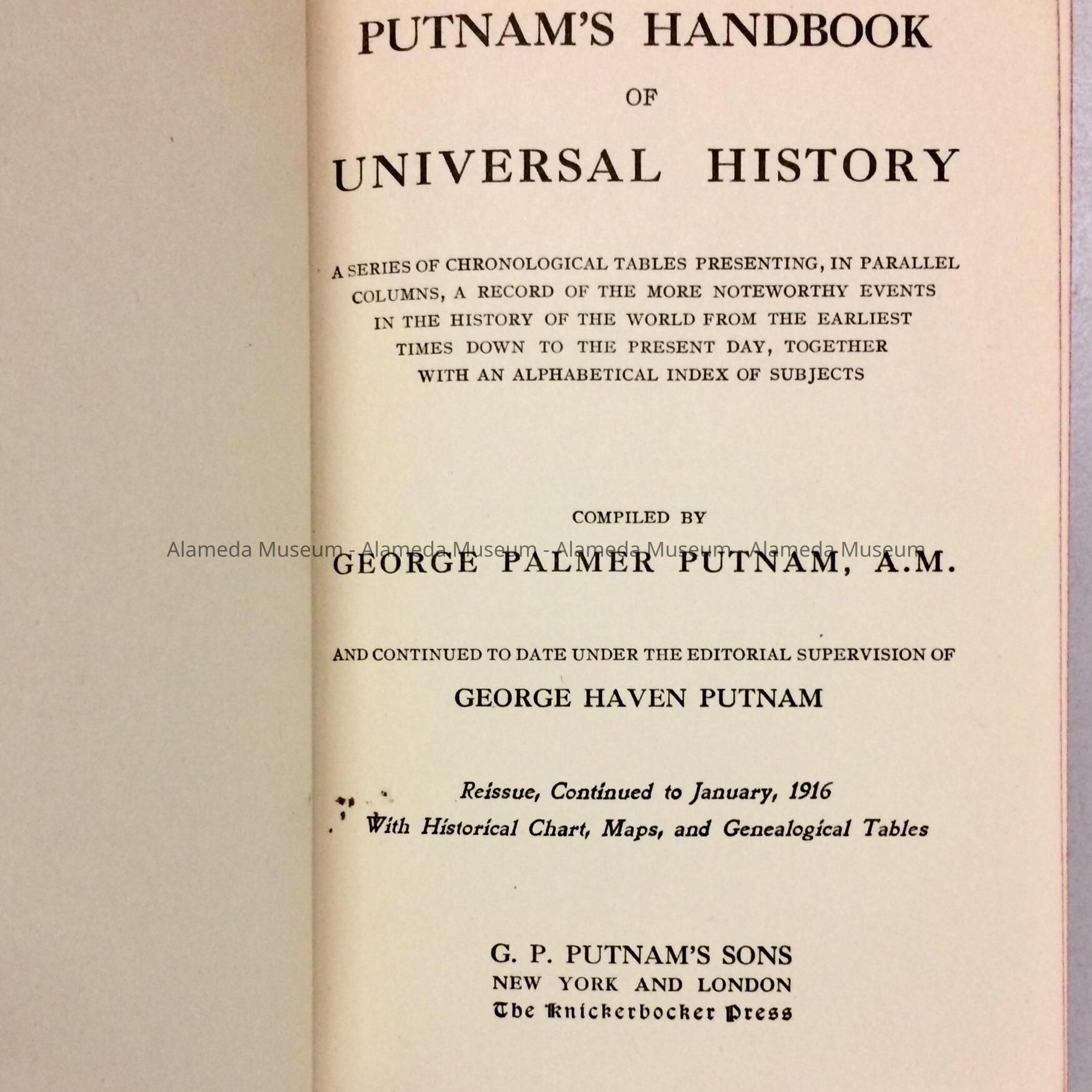 'Putnam's Handbook of Universal History' of Edward K. Taylor, 1916Entry/Object ID