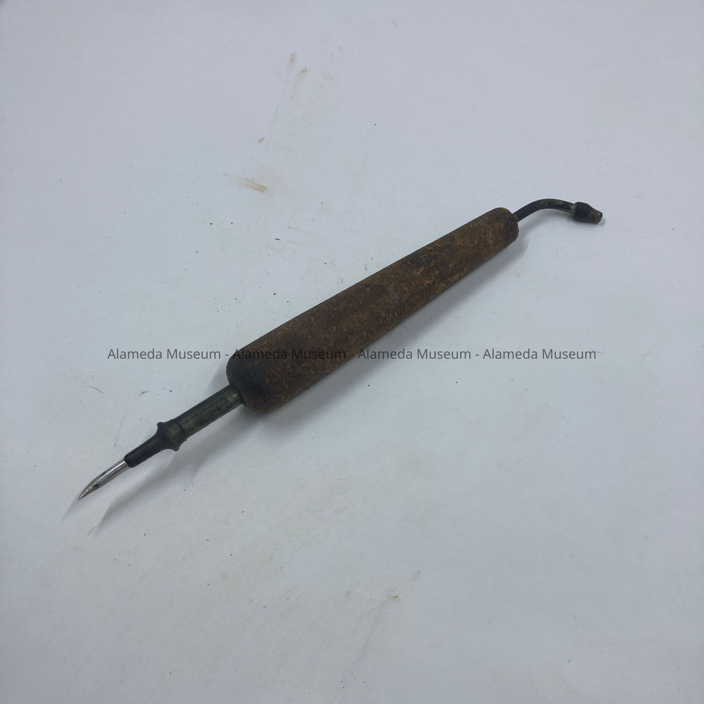 History of Object: Tool used for burning & carving designs on wooden boxes, picture frames, etc. Called "pyromania," it was an art form popular in the late 1890's and early 1900's. Tool owned by the Krueger family, old-time residents of Alameda.