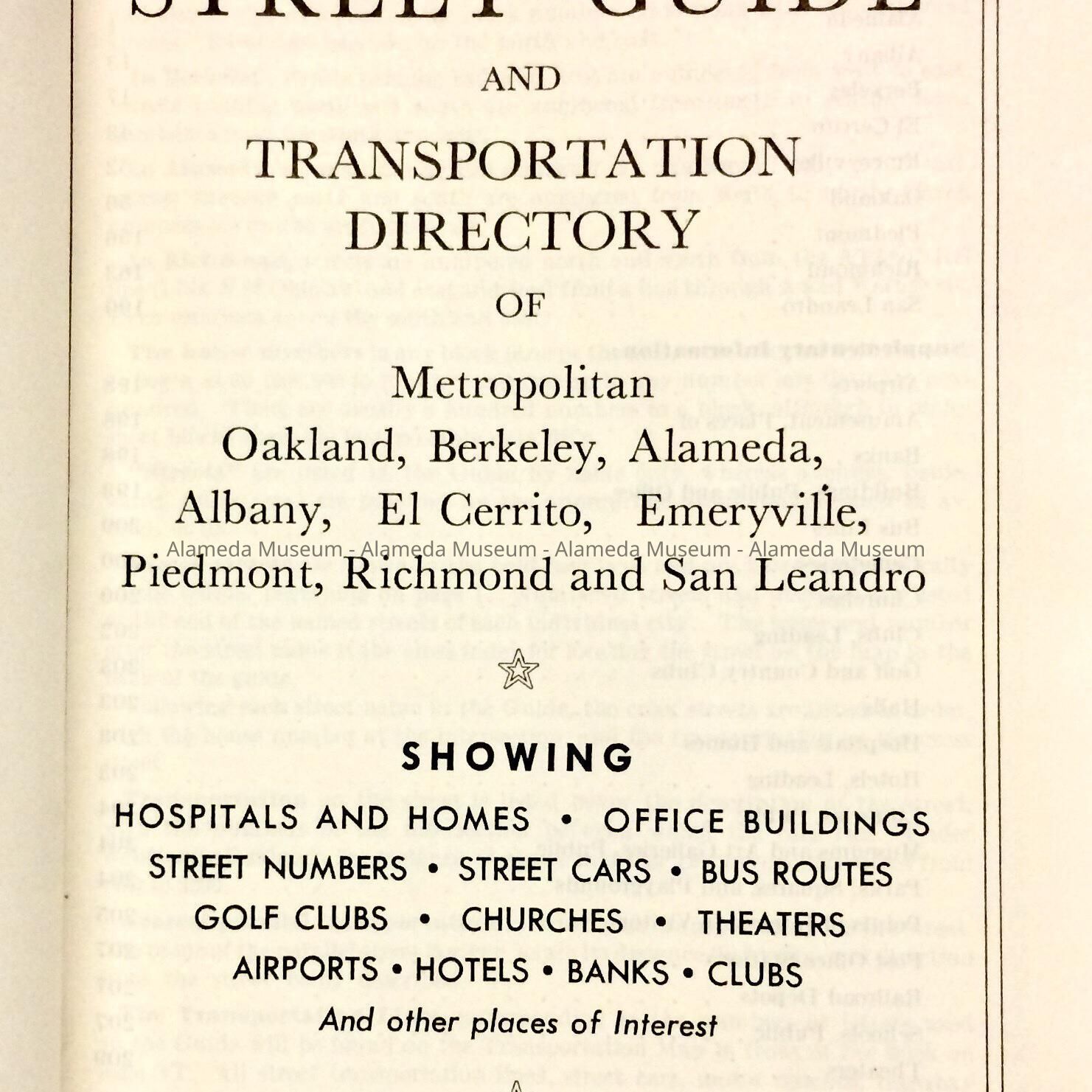 HISTORY OF OBJECT: A STREET GUIDE INCLUDING VARIOUS CITIES IN THE SAN FRANCISCO BAY AREA (INCLUDING ALAMEDA), CALIFORNIA.