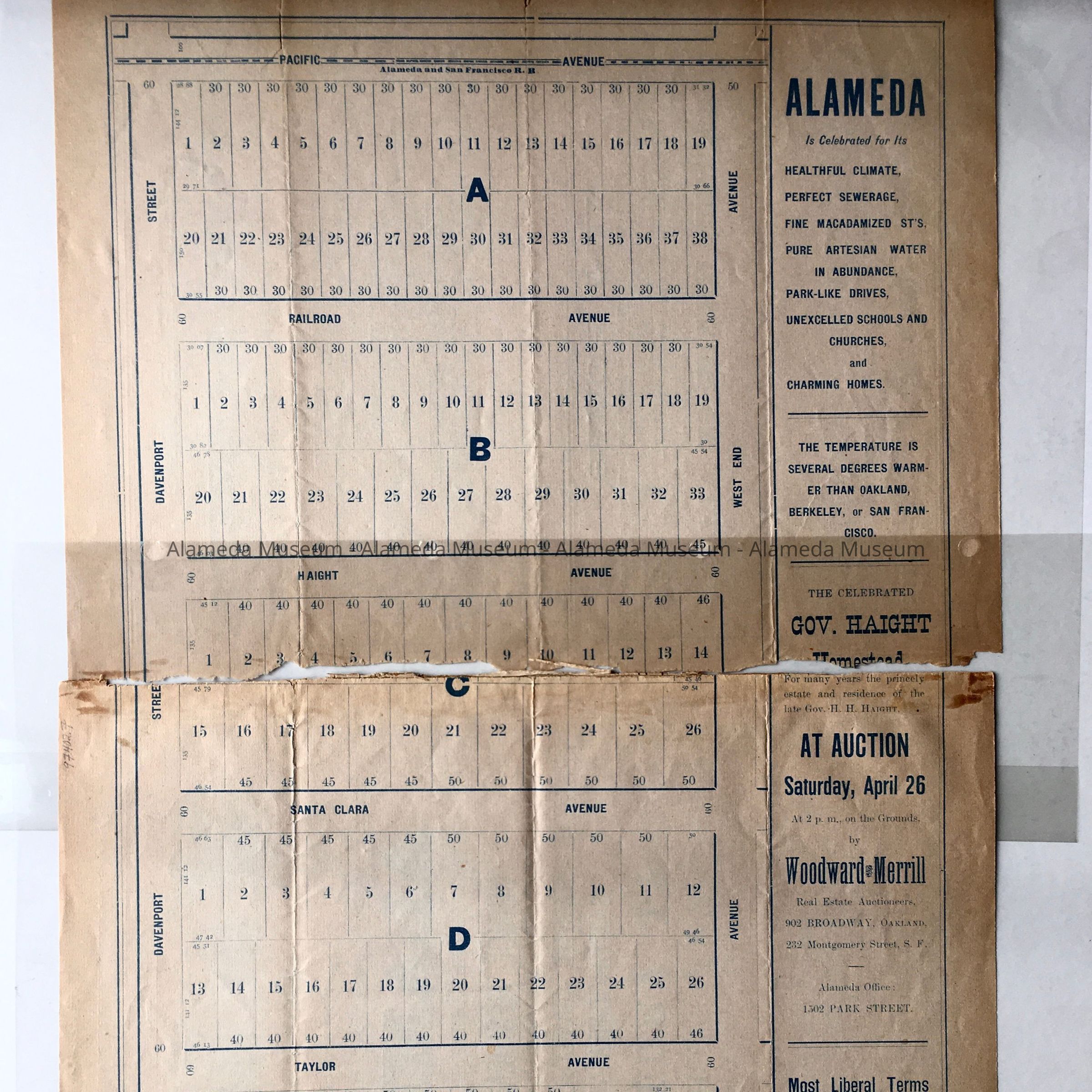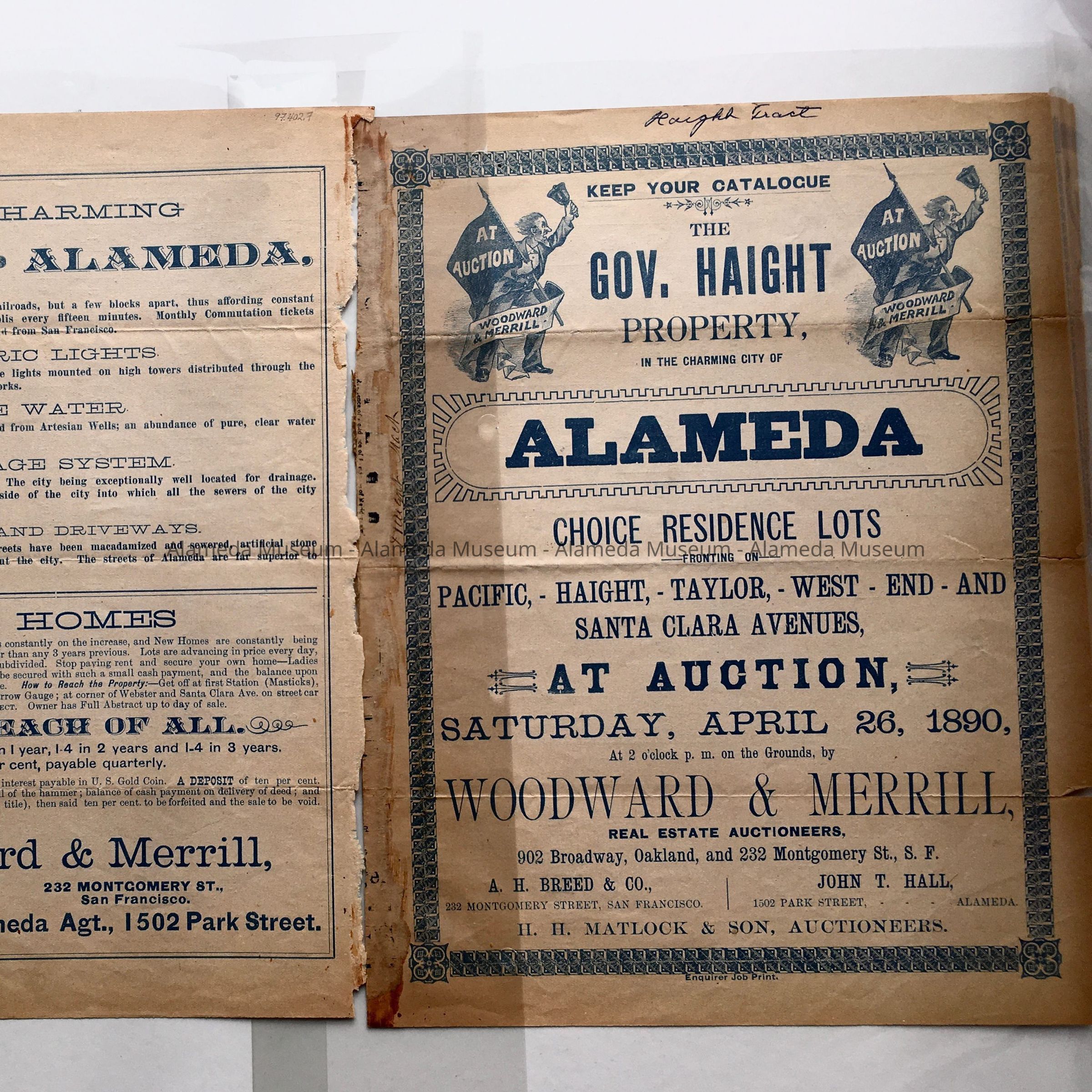Flyer concerning sale of property in the west end, part of the Governor Haight Tract. Auction to be held April 26, 1890.