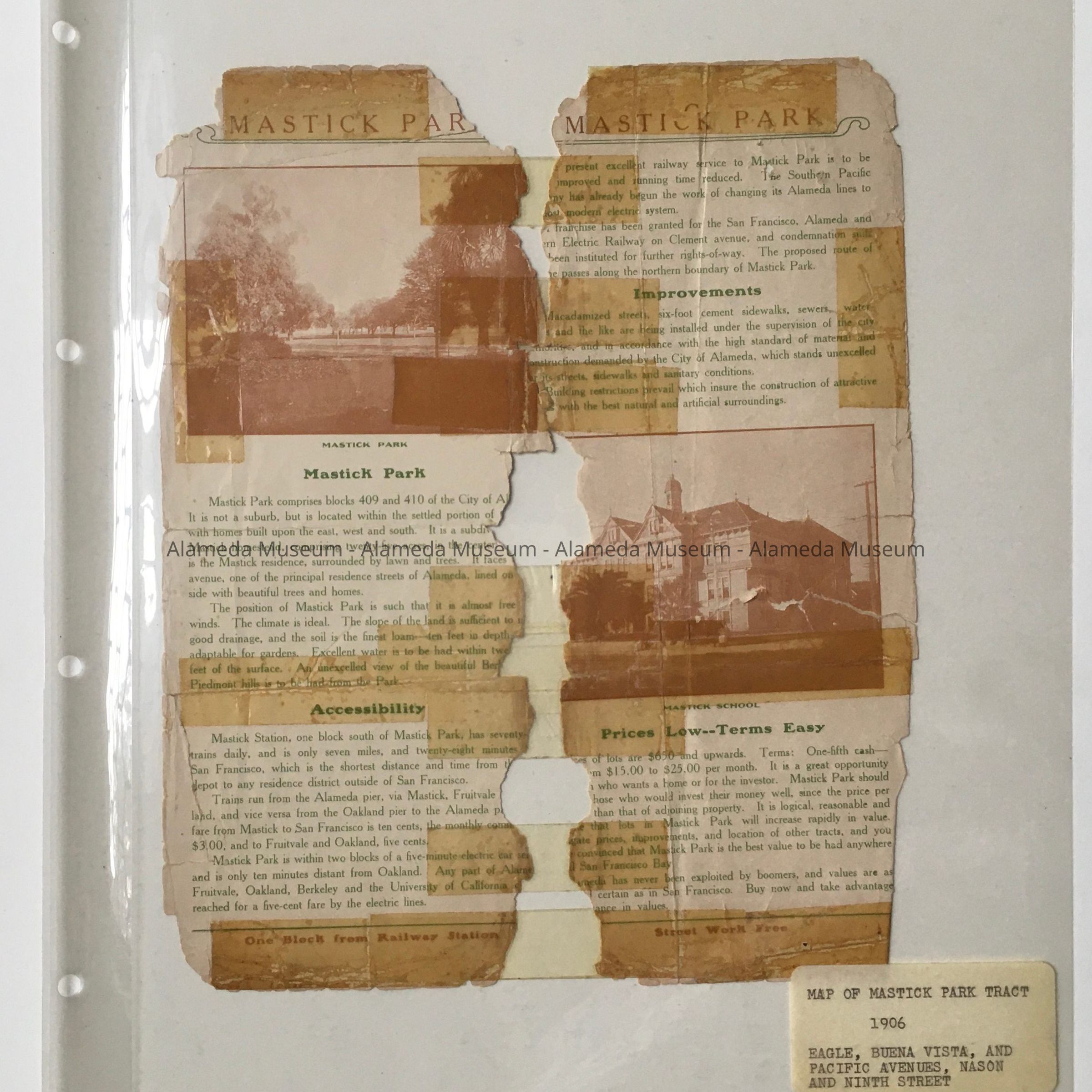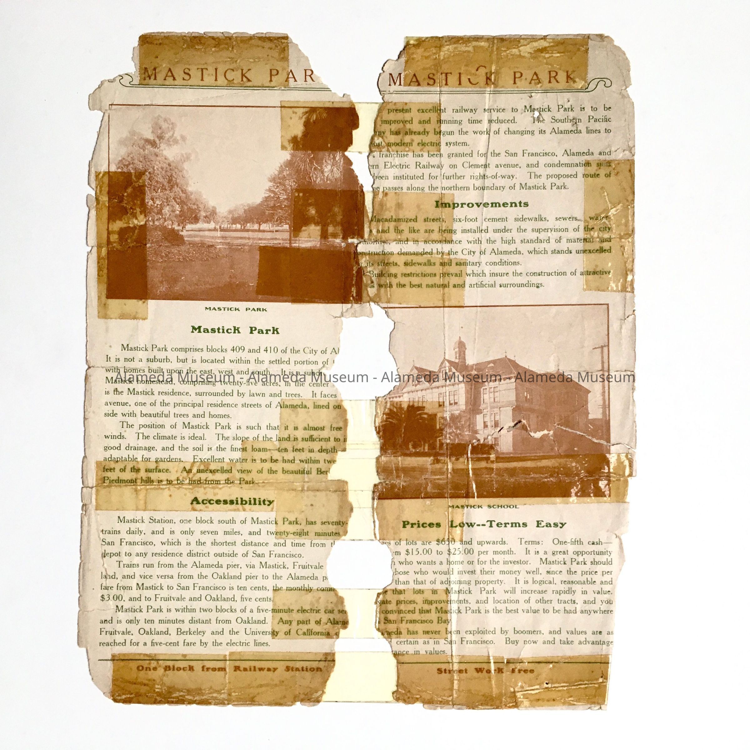 Real Estate Flyer about sale of property near Mastick Park, early 1900sEntry/Object ID