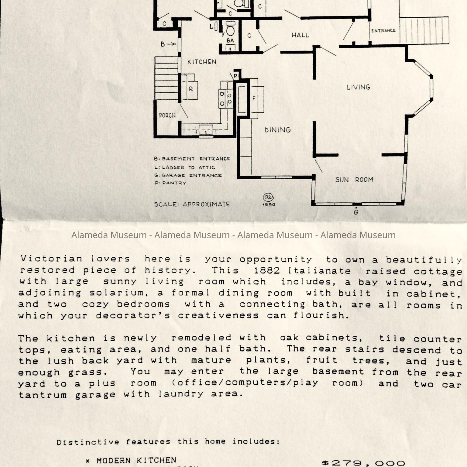 Real estate flyer for sale of 1301 Santa Clara Avenue, c. 1980sEntry/Object ID