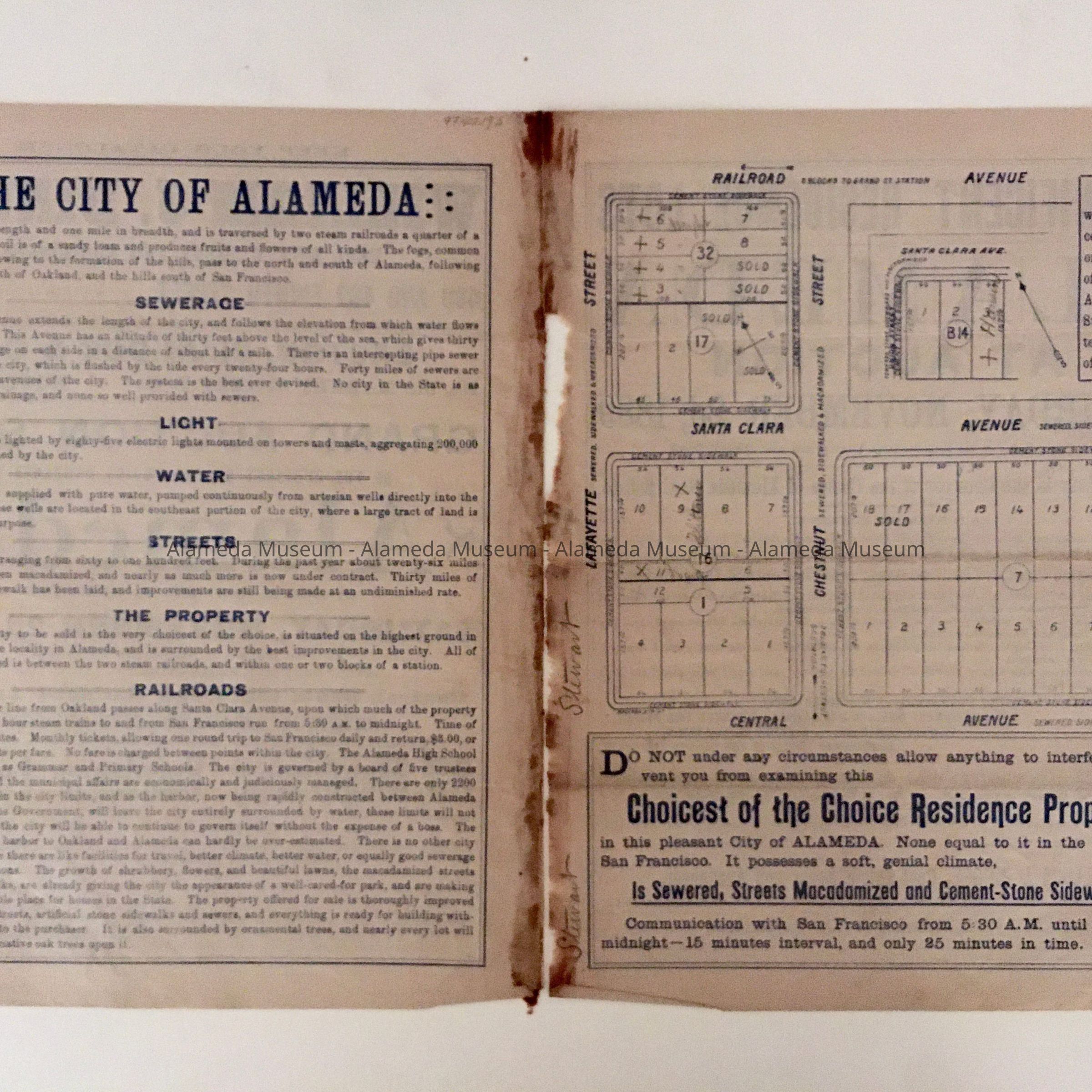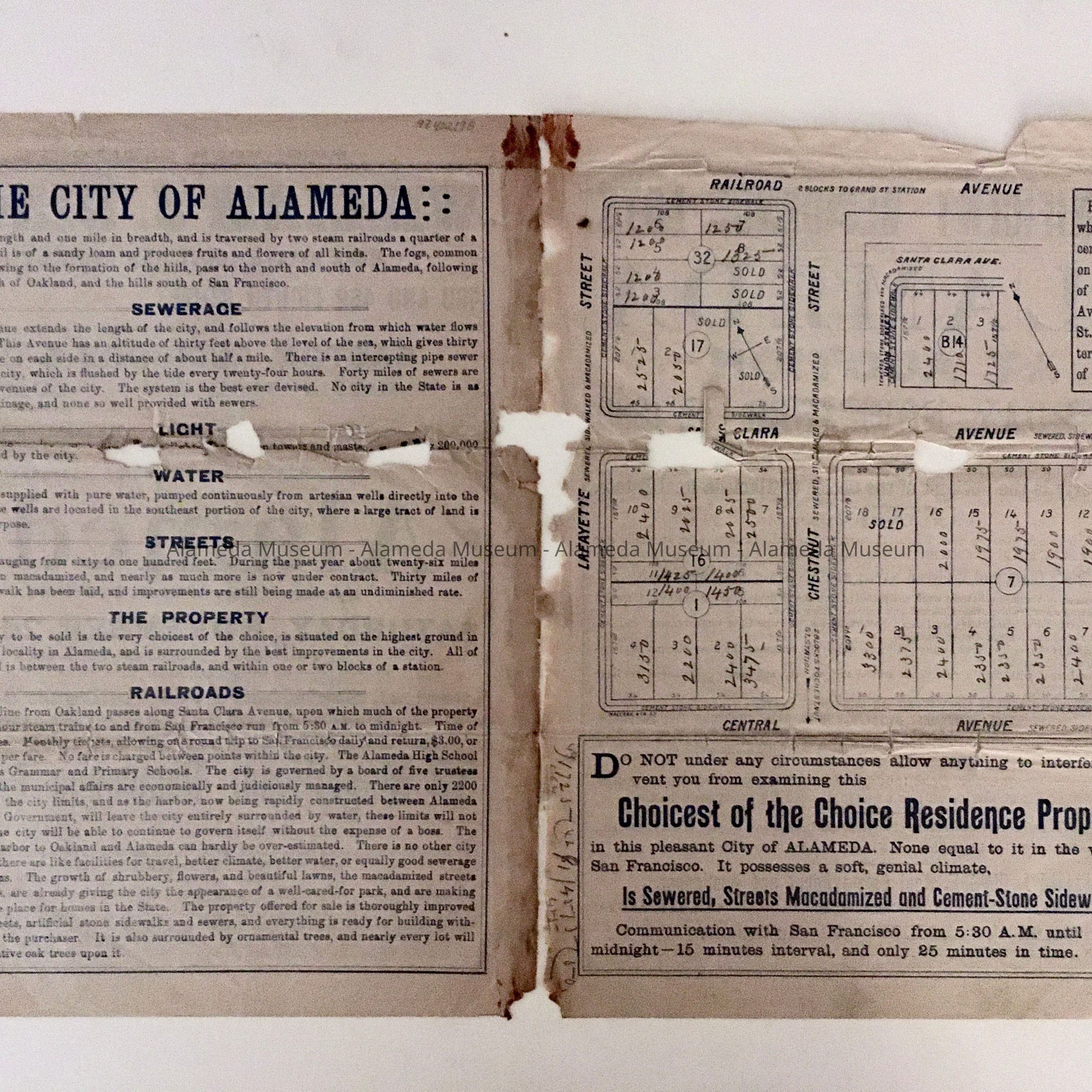 Real estate flyer, lots on Lafayette, Chestnut, Central, Santa Clara, Lincoln, 1889Entry/Object ID