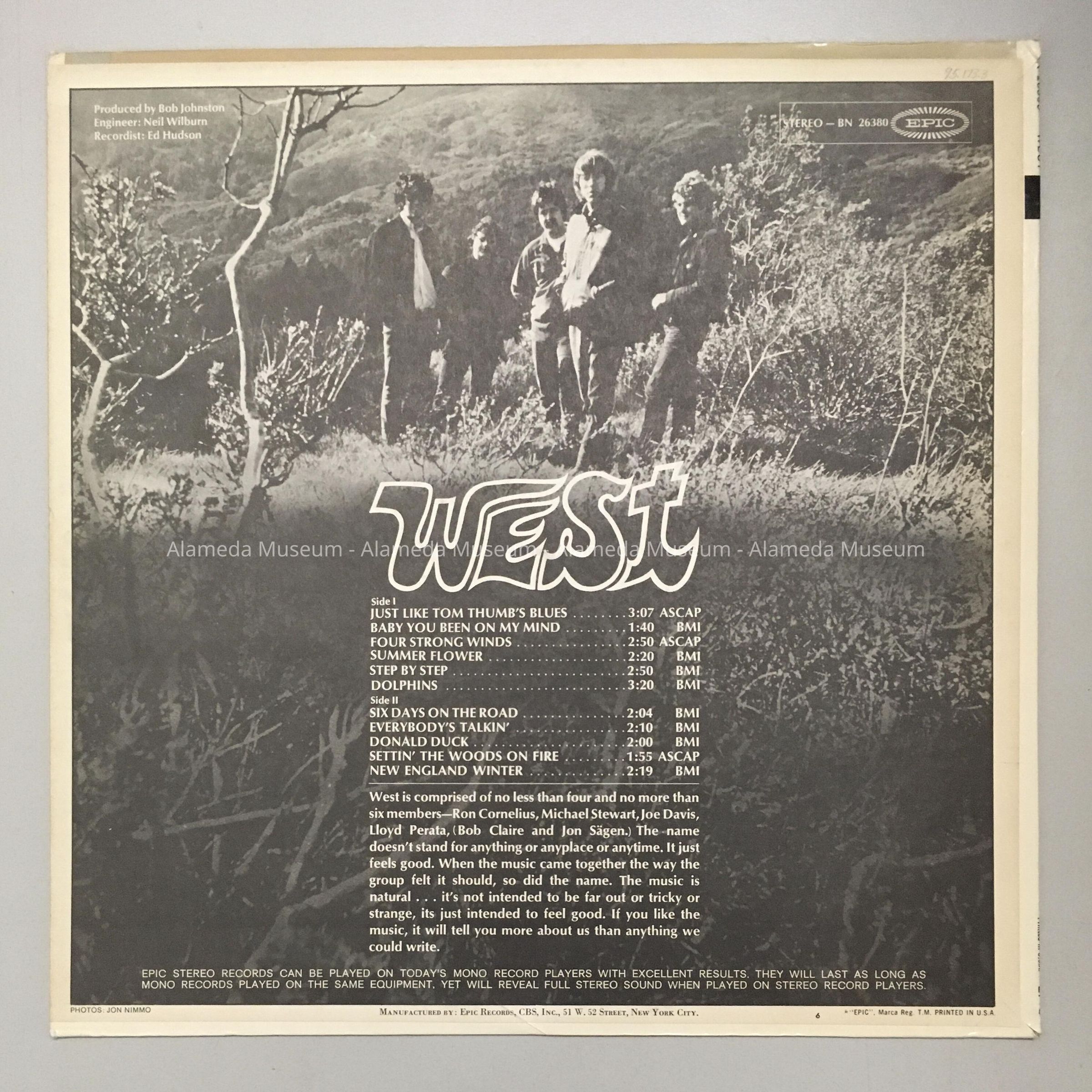 Recording of the musical group "West" A member of the group, Jon Sagen, an Alamedan, was the son of Elmer Sagen, one time principal of Lincoln School.