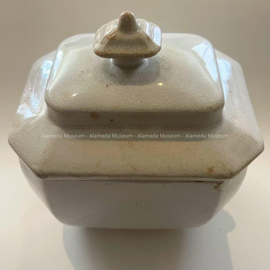 Rectangular Ironstone sugar bowl of the Meyers family, c. 1890Entry/Object ID