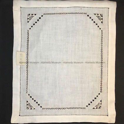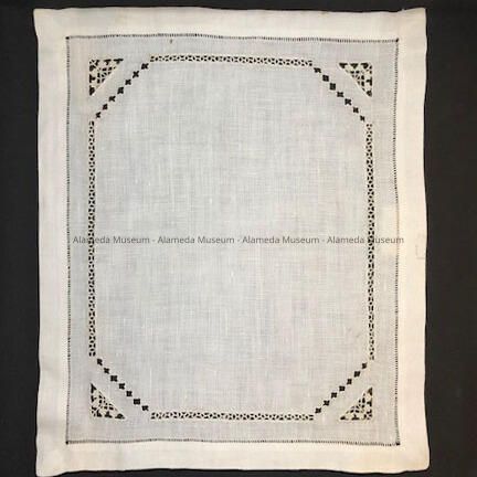 Rectangular white linen doily with tatting and crochet work, c. 1920Entry/Object ID
