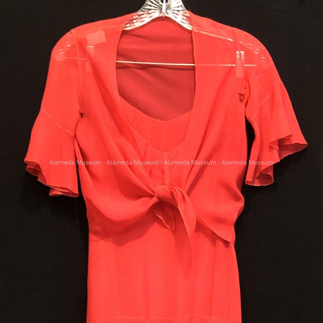Red Georgette sleeveless dress with ruffles and short-sleeved bolero jacket, 1933sEntry/Object ID