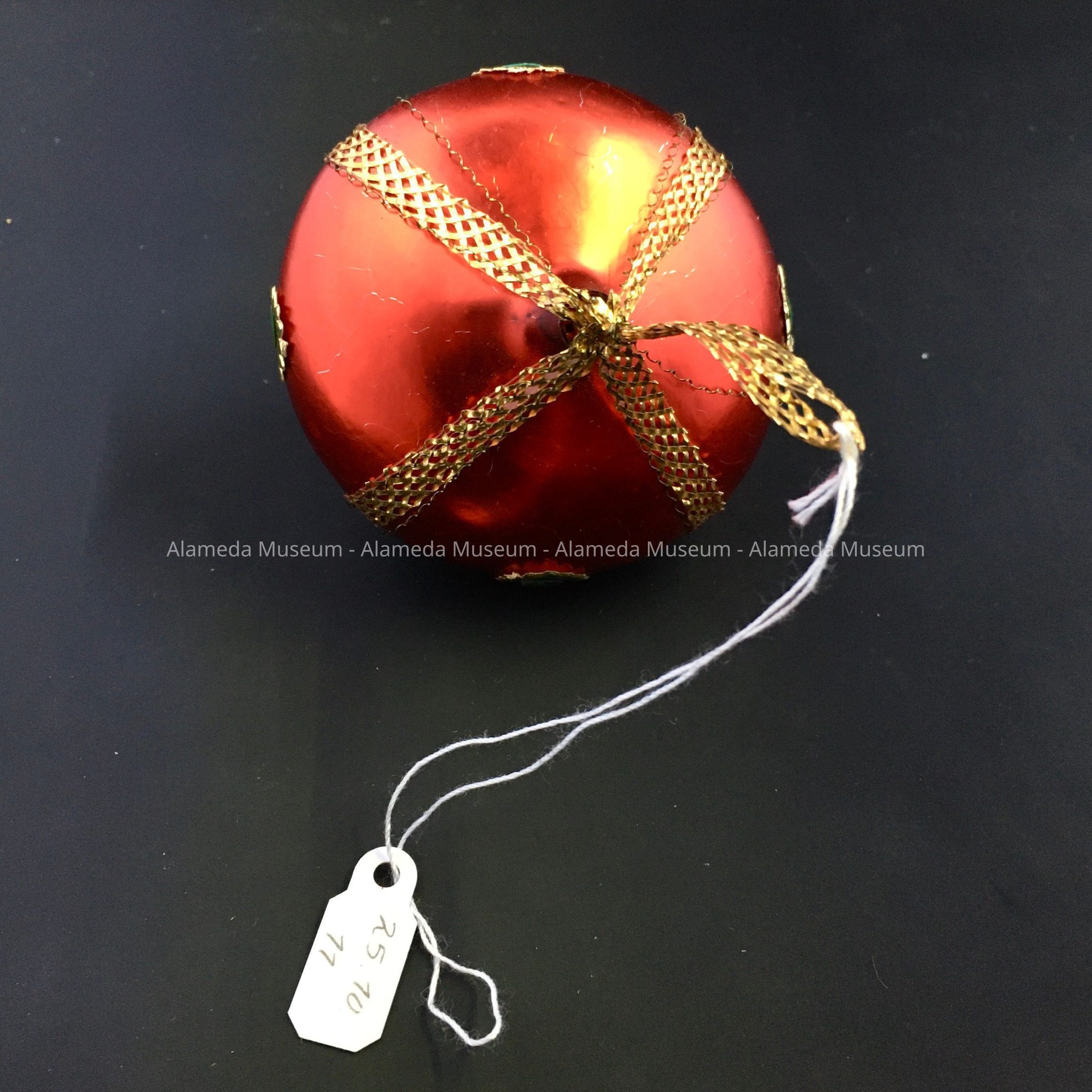 Red Glass Ellipsoid Christmas Ornament with Pendant, 1890sEntry/Object ID