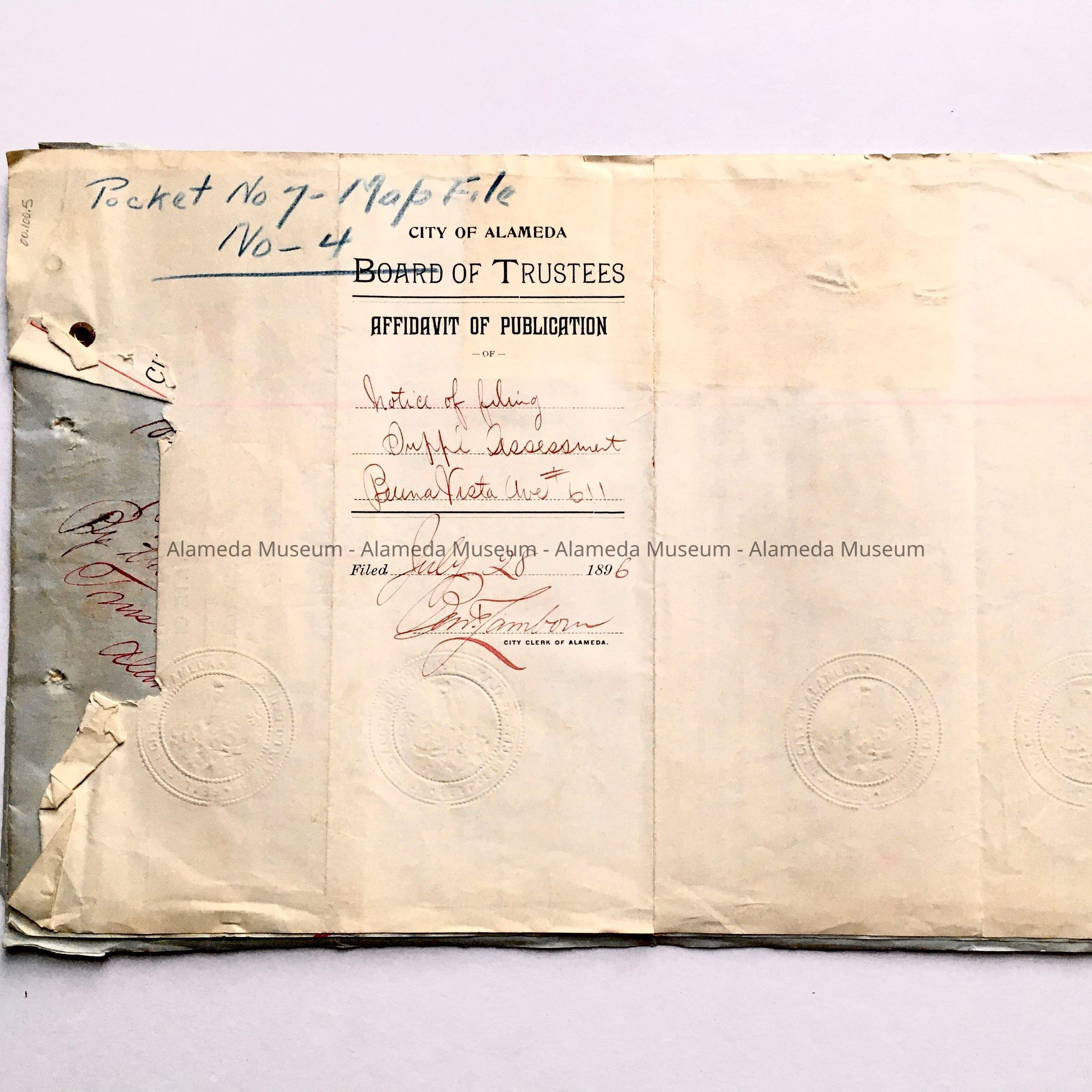 Description: Twelve (12) page typewritten report with coverlet style cover. Coverlet has bold printed caption "City of Alameda, Board of Trustees".