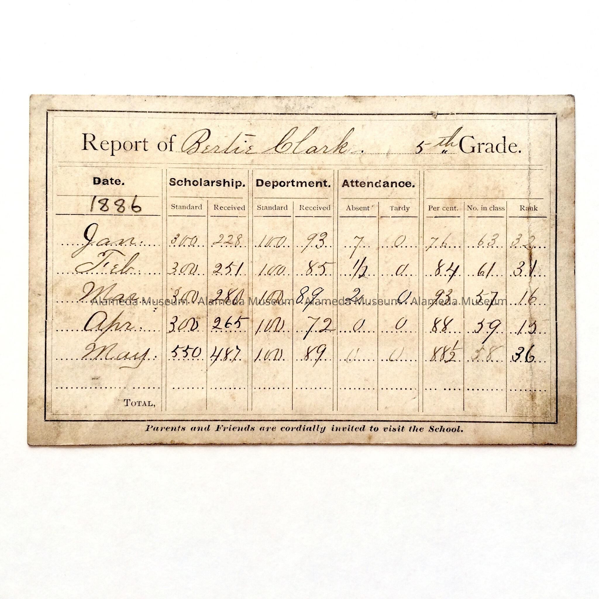 Report Card Herbert D. Clark, 5th Grade, Porter School, 1886Entry/Object ID