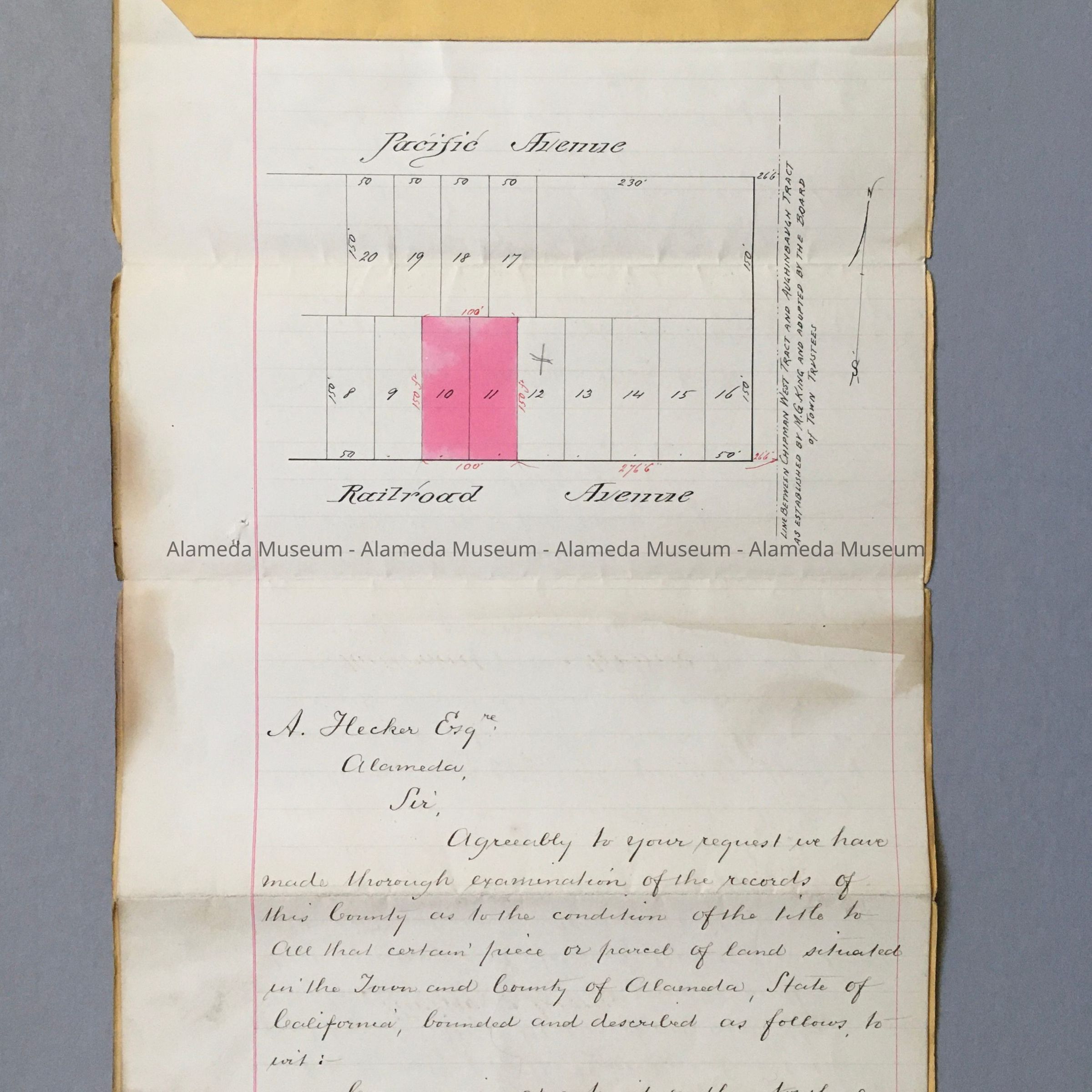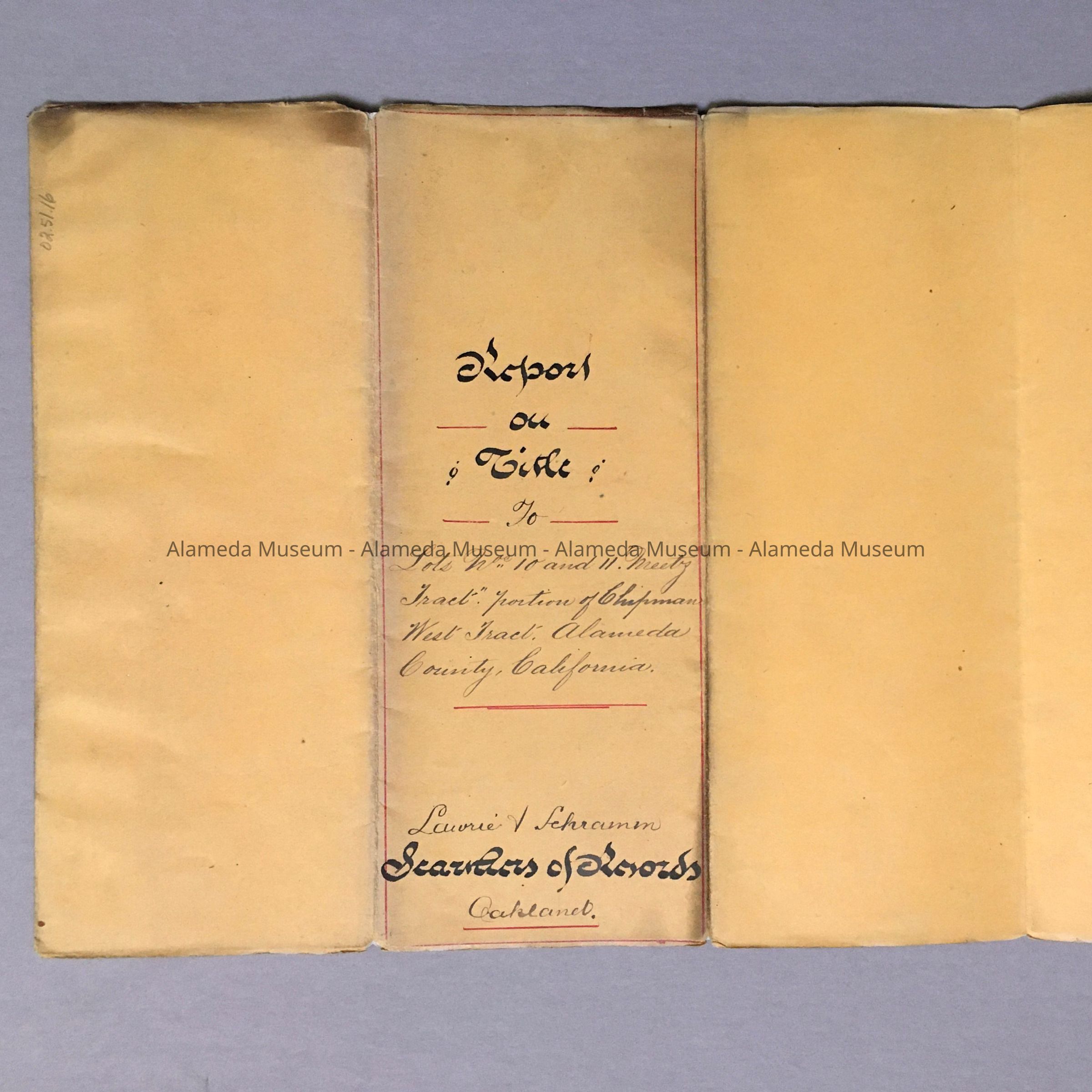 A REPORT OF TITLE ON PROPERTY PRESENTLY KNOWN AS 543 AND 545 LINCOLN AVENUE, ALAMEDA, CA. THE REPORT WAS PRODUCED BY ADOLPH HECKER.