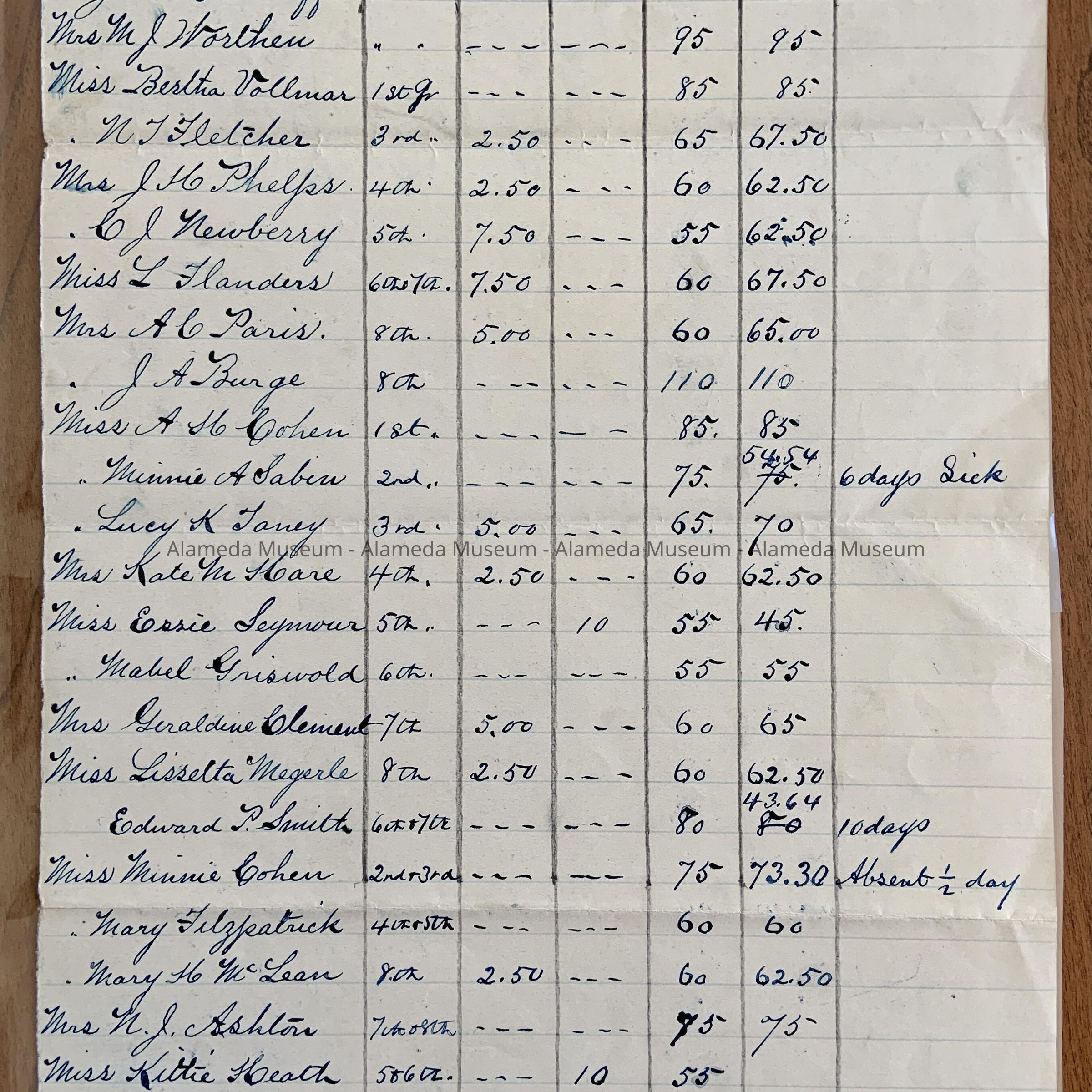 A LISTING OF TEACHERS' NAMES, GRADE PLACEMENTS, AND SALARIES FOR THE MONTH OF AUGUST 1884.