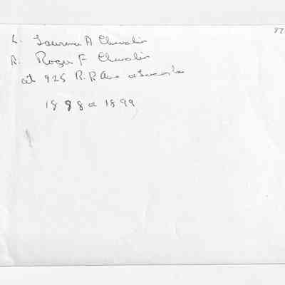 Reproduced photo of Lawrence and Roger Chevalier on a tandem bicycle in front of 925 Lincoln Ave, 1898 or 1899Entry/Object ID
