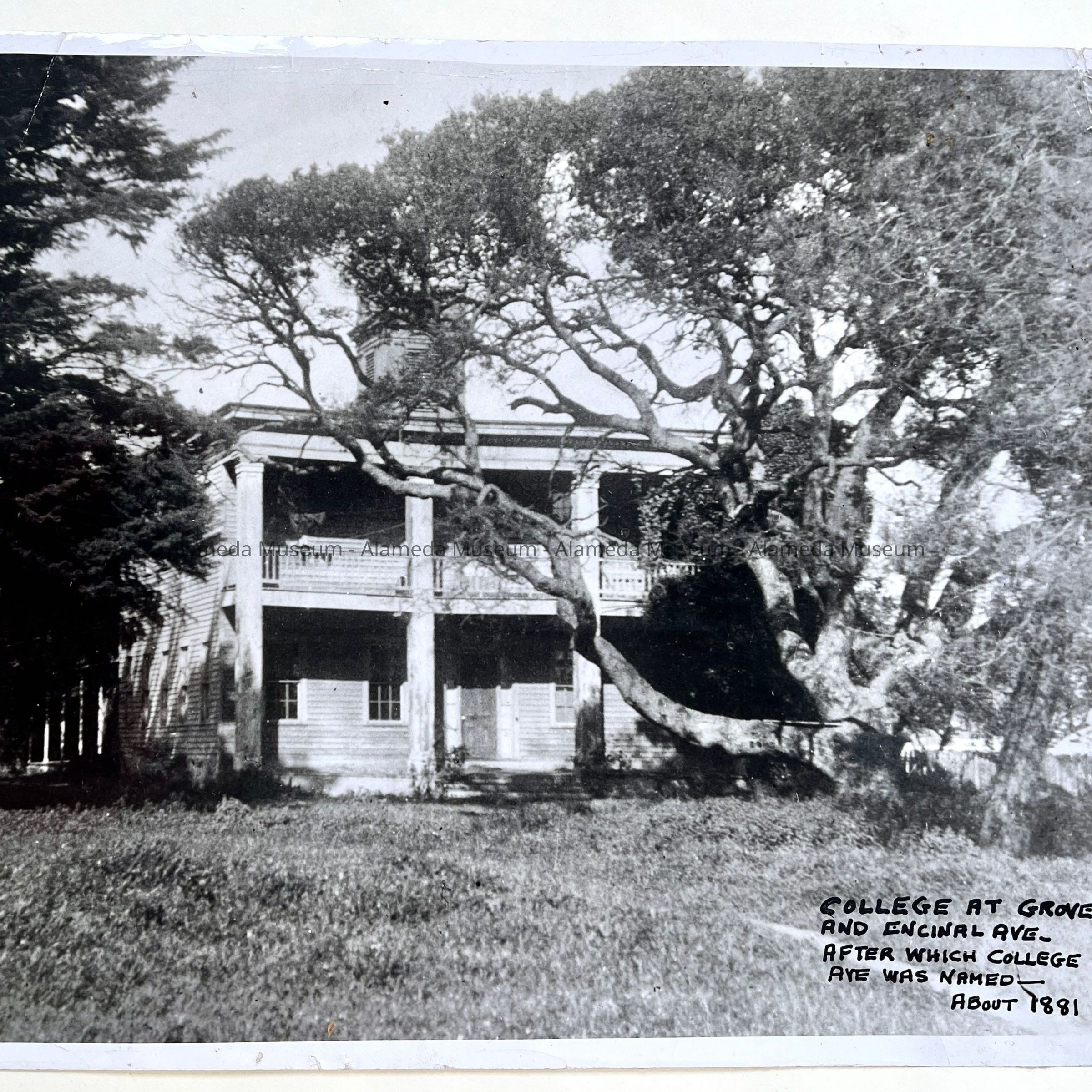 Photographic reproduction of photograph taken about 1881 of the Oak Grove Institute on College Avenue, long demolished.
