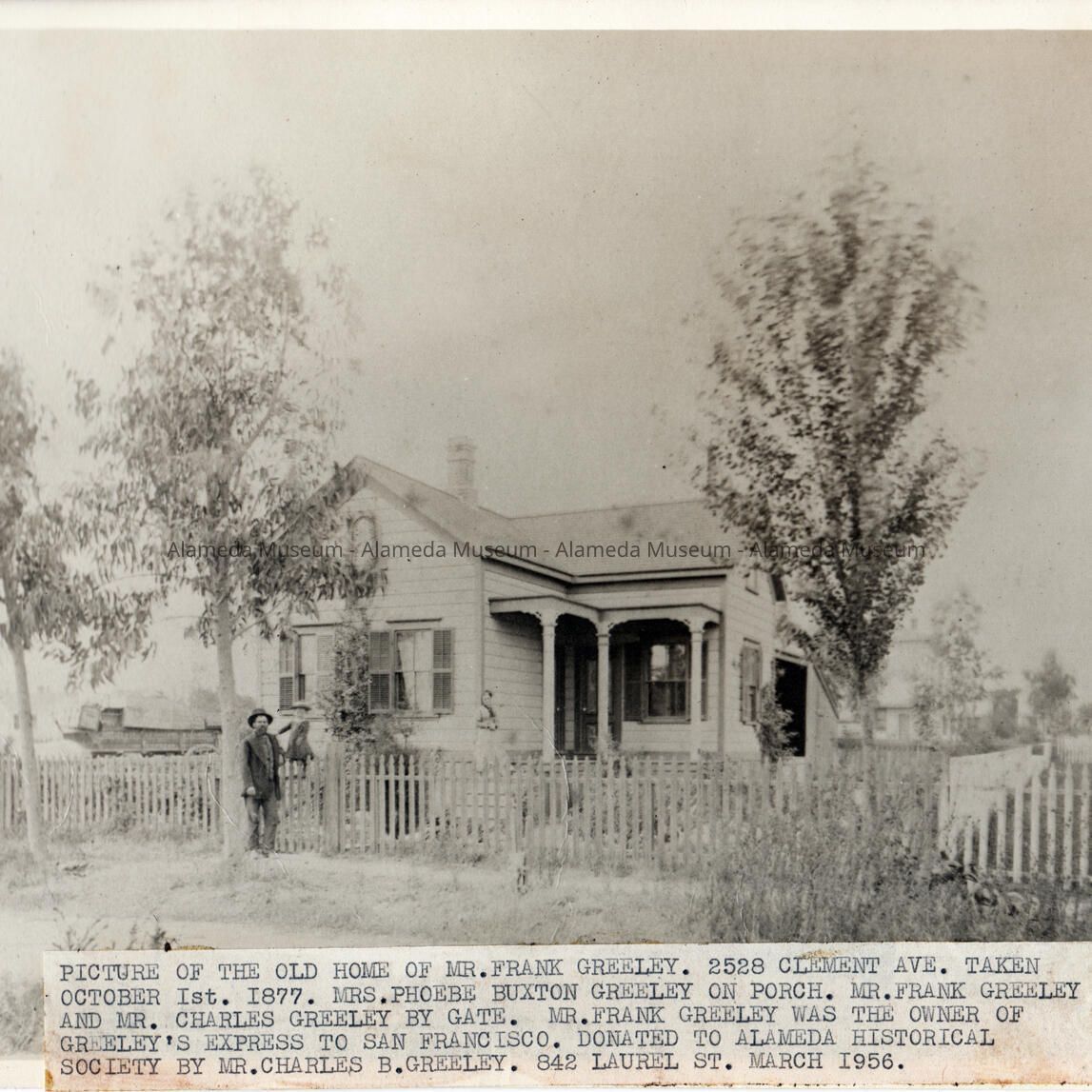 History: Reproduction of a historical photograph of Frank Greeley's home at 2528 Clement Avenue. The picture was originally taken in 1877.