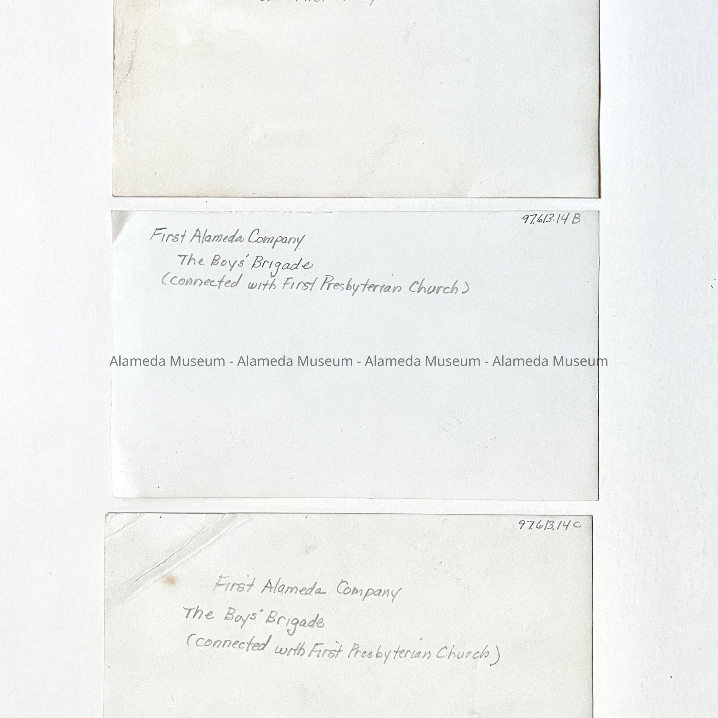 A REPRODUCTION PHOTOGRAPH MADE FROM ACC. NO. 97.613.13, DEPICTING THE FIRST ALAMEDA COMPANY OF THE BOYS' BRIGADE.