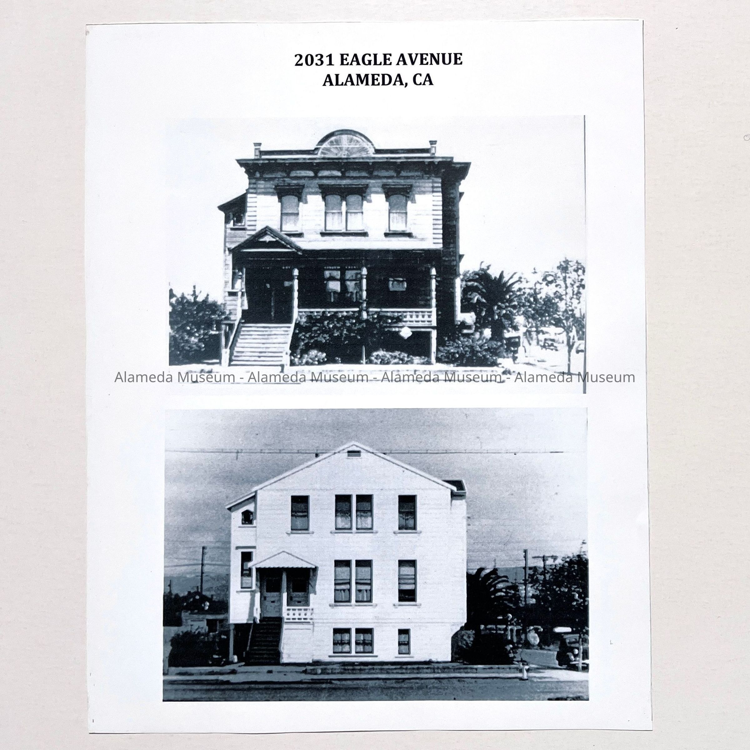 HISTORY OF OBJECT: TWO PHOTOS, FORMING A BEFORE AND AFTER VIEW, OF 2031 EAGLE AVENUE, AN EARLY BUILDING THAT WAS PART OF THE FASSKING HOTEL, WHICH WAS MOVED TO ITS PRESENT LOCATION IN 1891 AND SUBSEQUENTLY ALTERED BY ALEXANDER LIND.