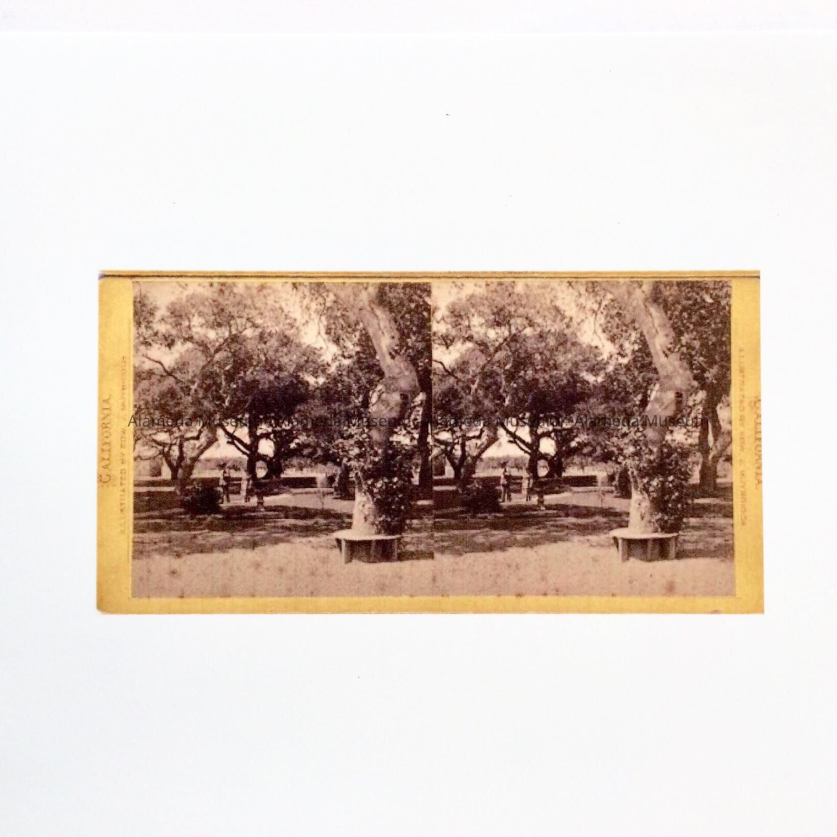 STEREOPTIC CARDS DEPICTING OAK TREES AT THE FERNSIDE ESTATE OF A A COHEN, ALAMEDA, CALIFORNIA.