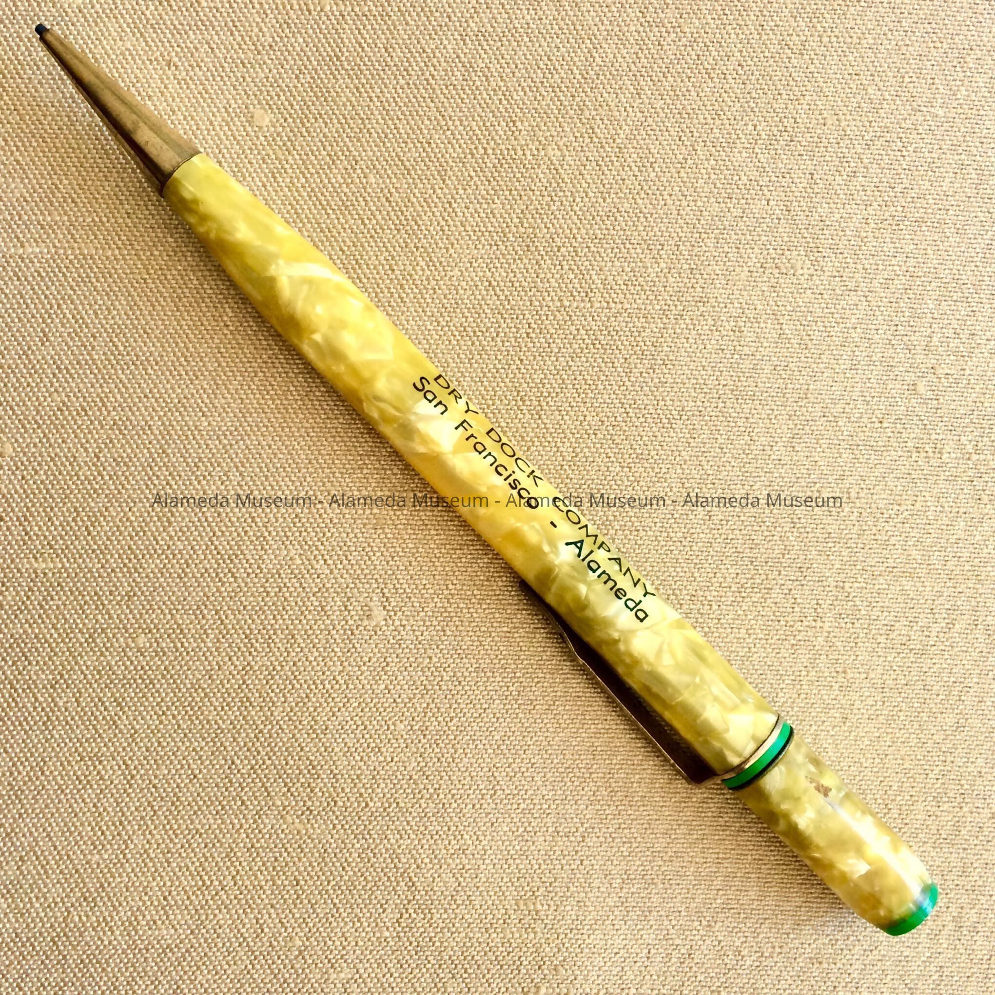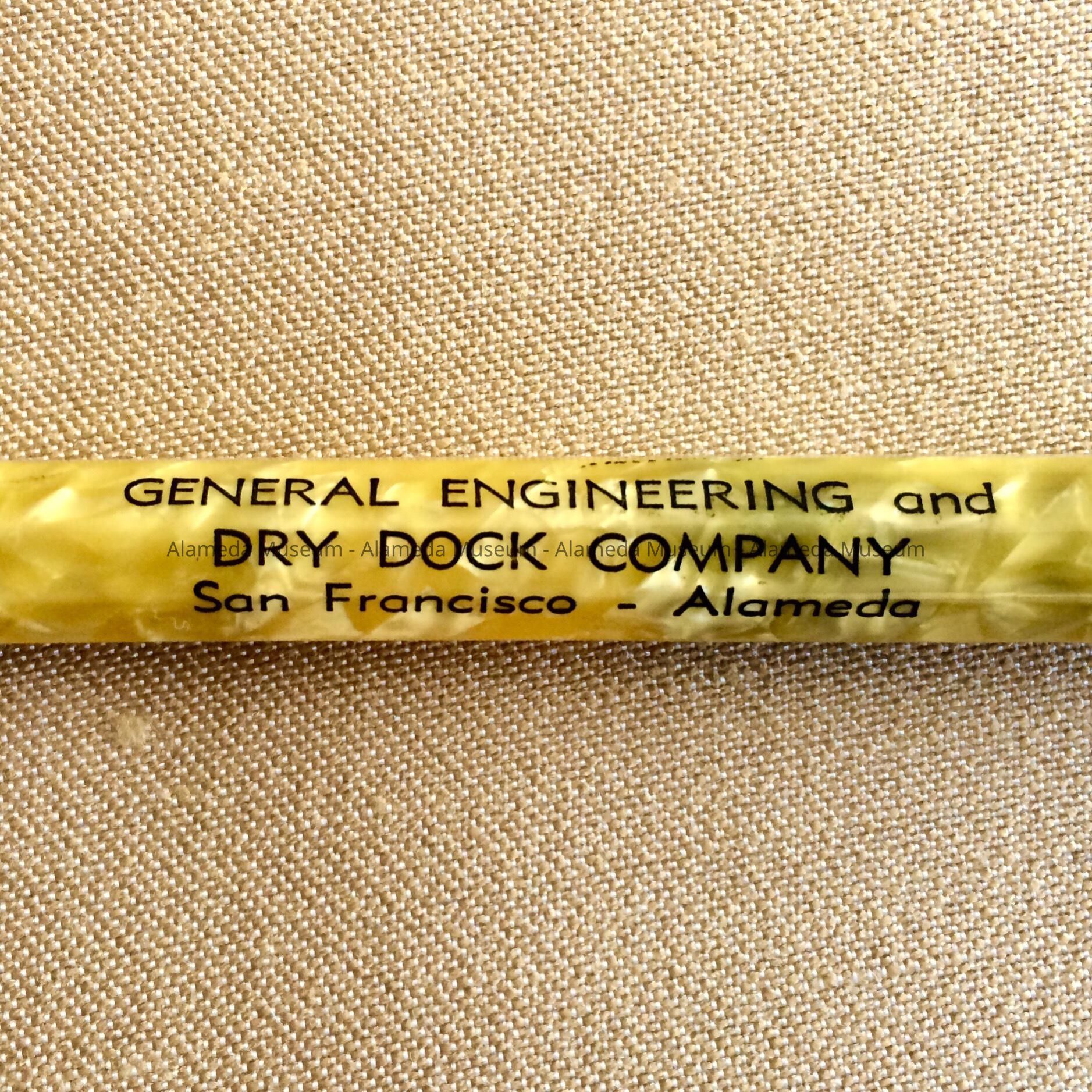 HISTORY OF OBJECT: RETRACTABLE LEAD POCKET PENCIL, ADVERTISING THE "GENERAL ENGINEERING AND DRYDOCK COMPANY, SAN FRANCISCO AND ALAMEDA." THE PENCIL BELONGED TO THE LATE DANIEL H KNOX, MUNICIPAL JUDGE.