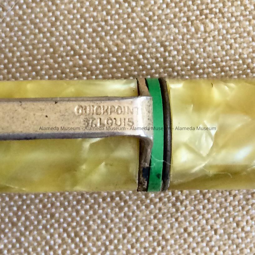 DESCRIPTION: ADVERTISING LEAD PENCIL OF YELLOW-COLORED BAKELITE, TRIMMED IN GREEN. PENCIL ALSO INCLUDES A POCKET CLIP WHICH IS NICKEL-PLATED.