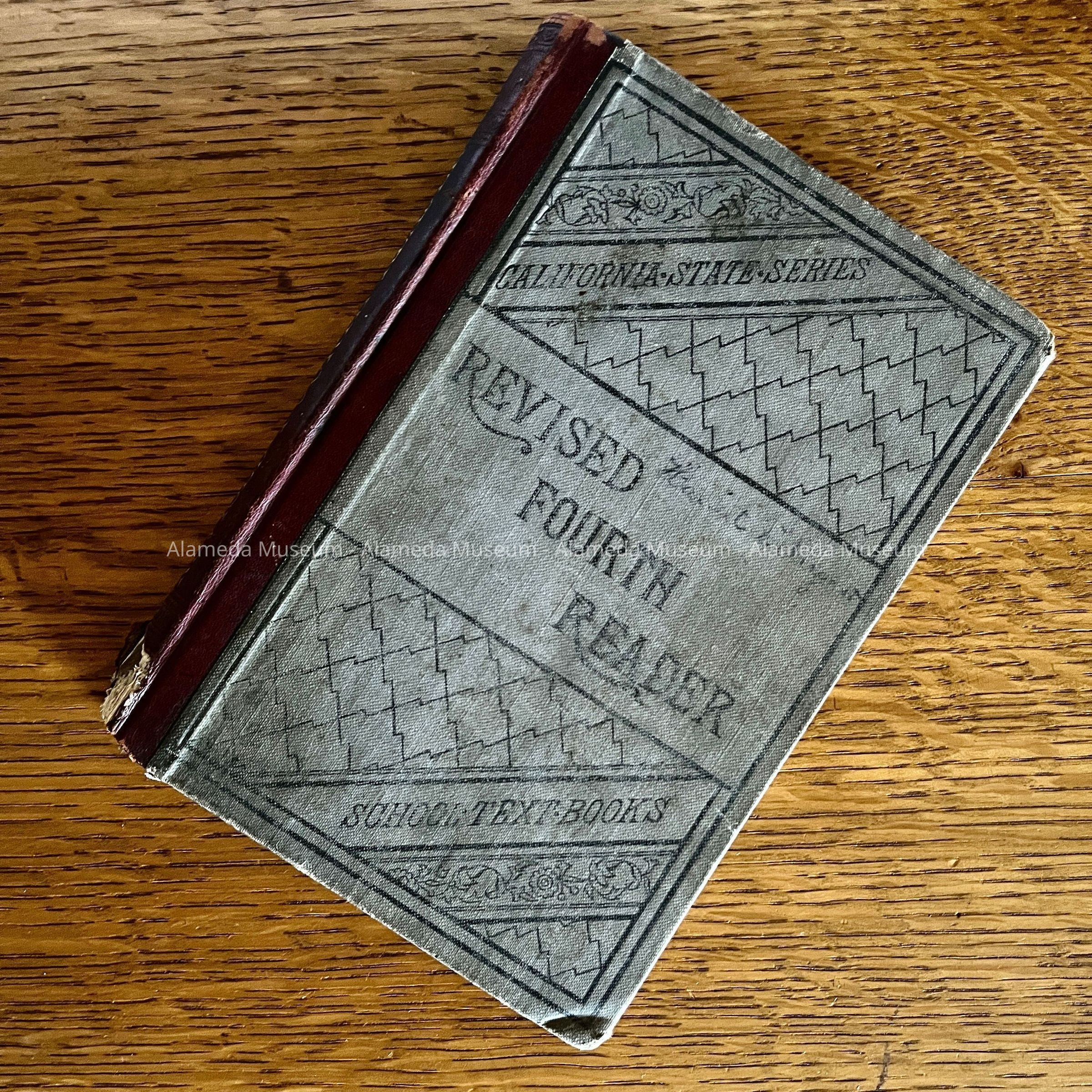 Description: Hardbound volume with cover of grey-colored buckram and spine of maroon-colored leather. The spine and the cover have the caption, "Revised Fourth Reader (California State Series)".