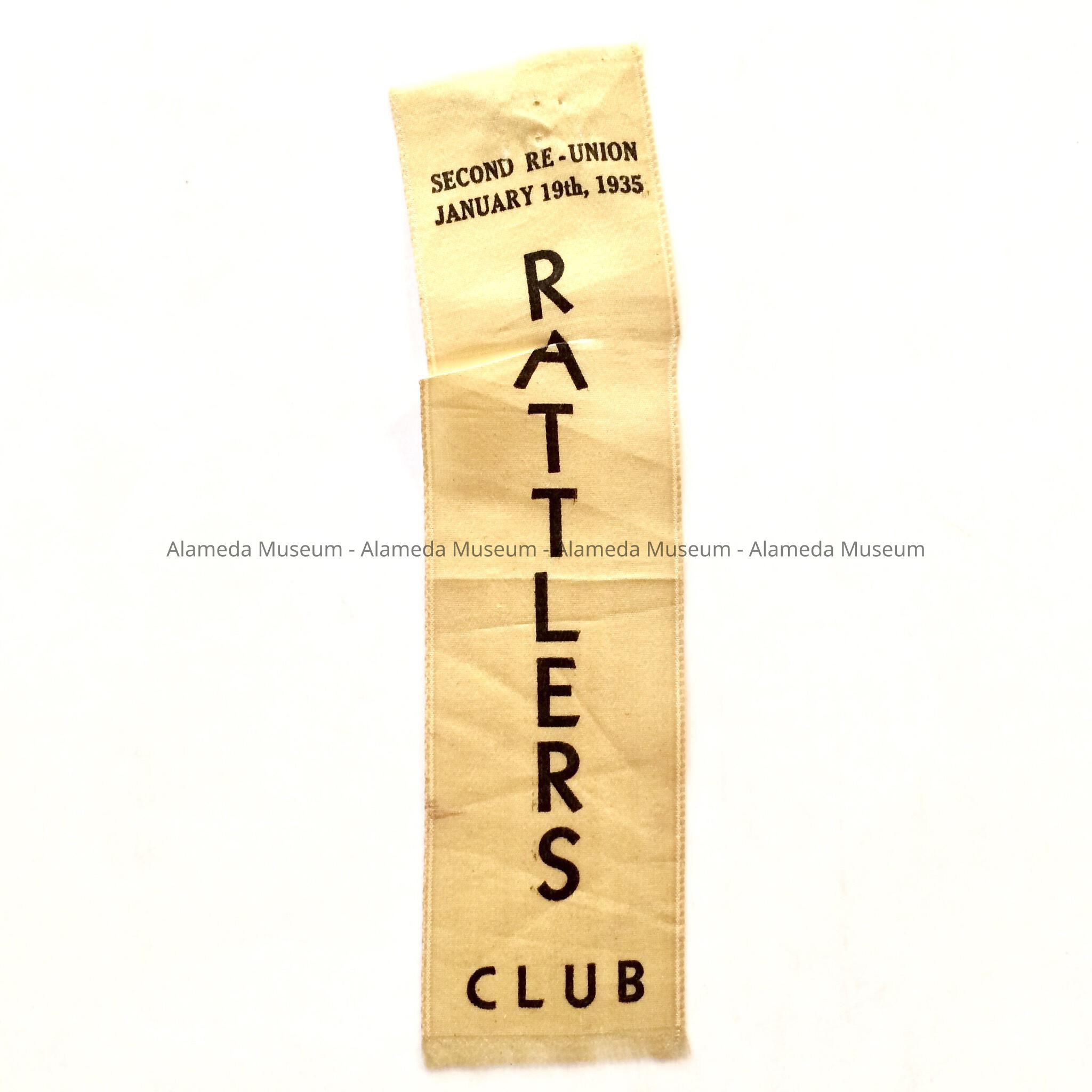 History of Object: Participants ribbon for the second reunion of the Rattlers Club of Alameda, held January 19th, 1935.