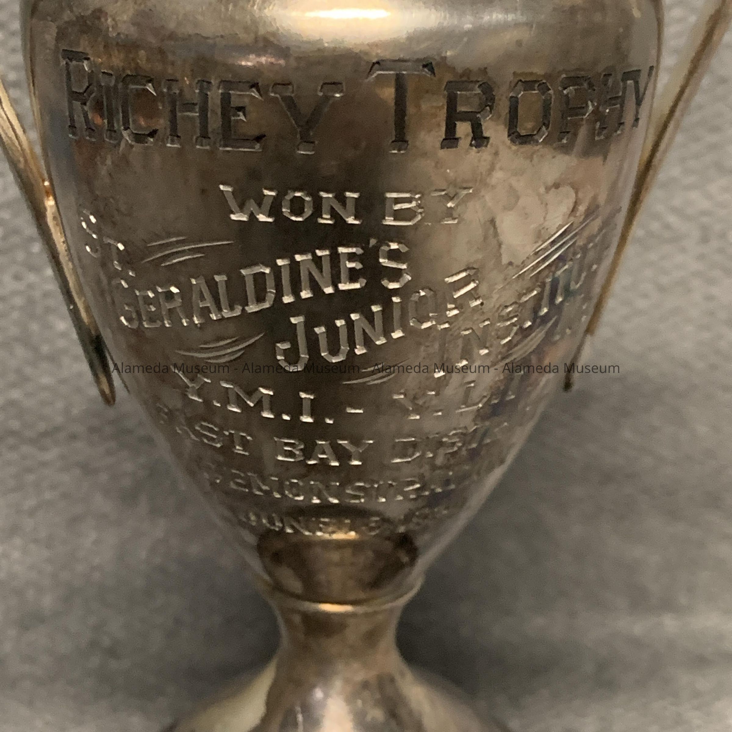 TROPHY ENGRAVED "RICHEY TROPHY WON BY ST GERALDINE'S JUNIOR INSTITUTE #4, YMI-YLI, EAST BAY DISTRICT DEMONSTRATION, JUNE 16, 1929."