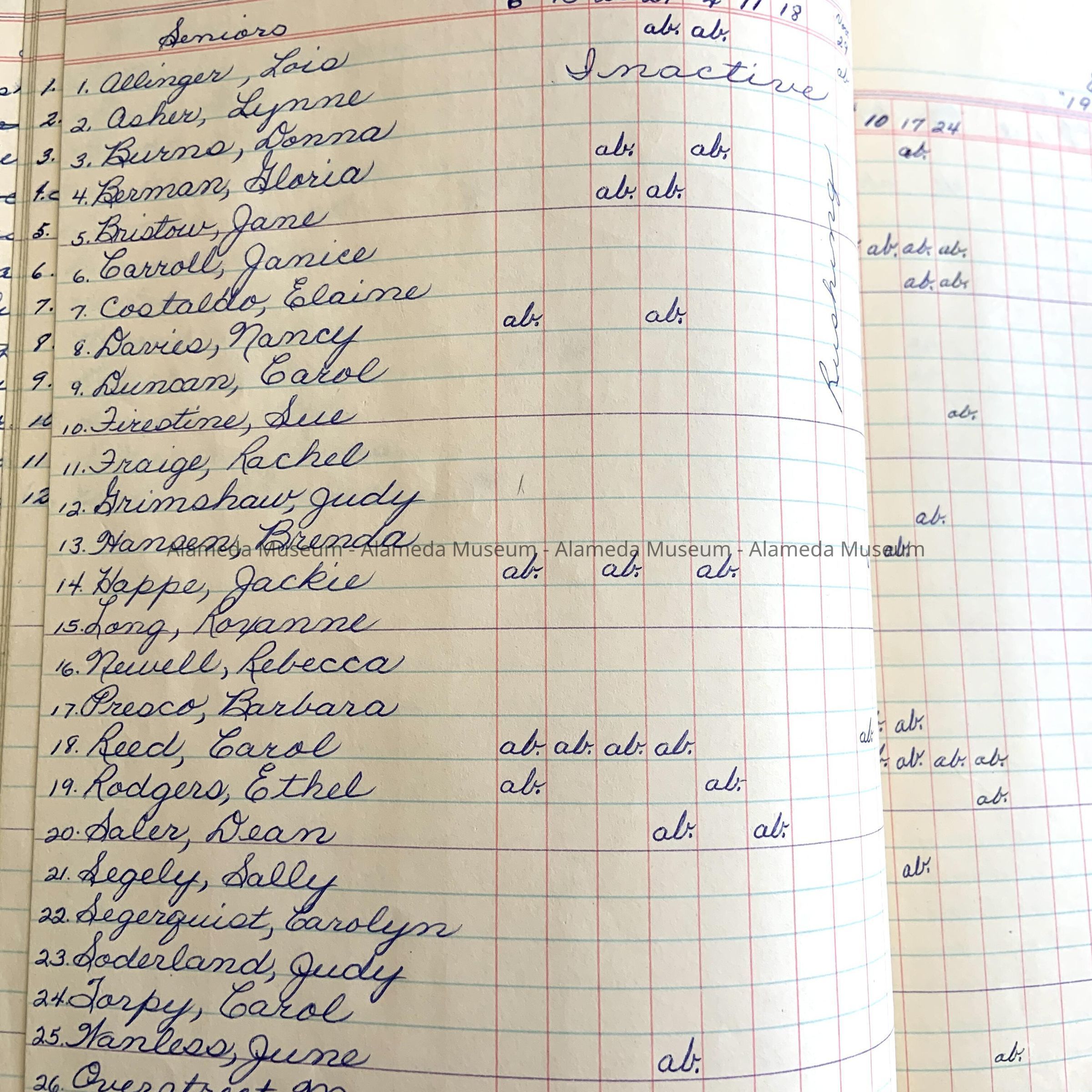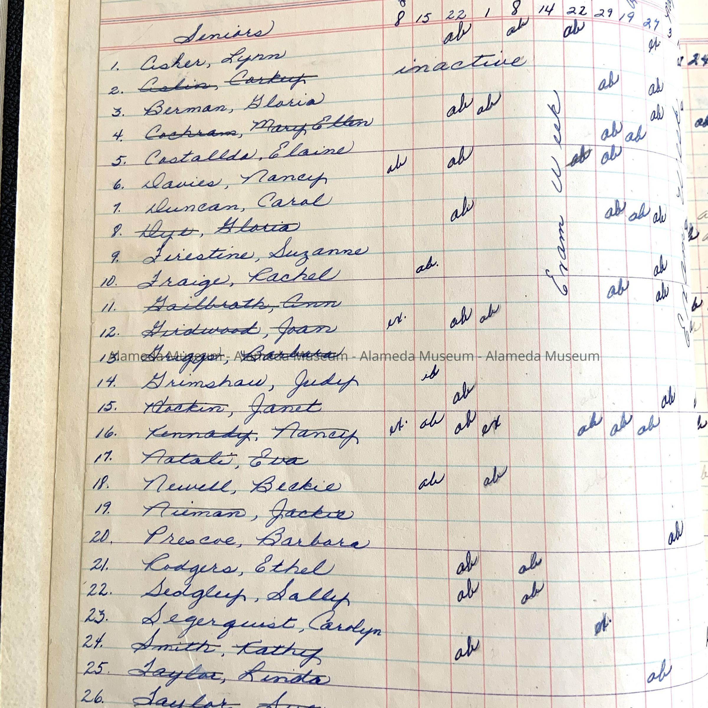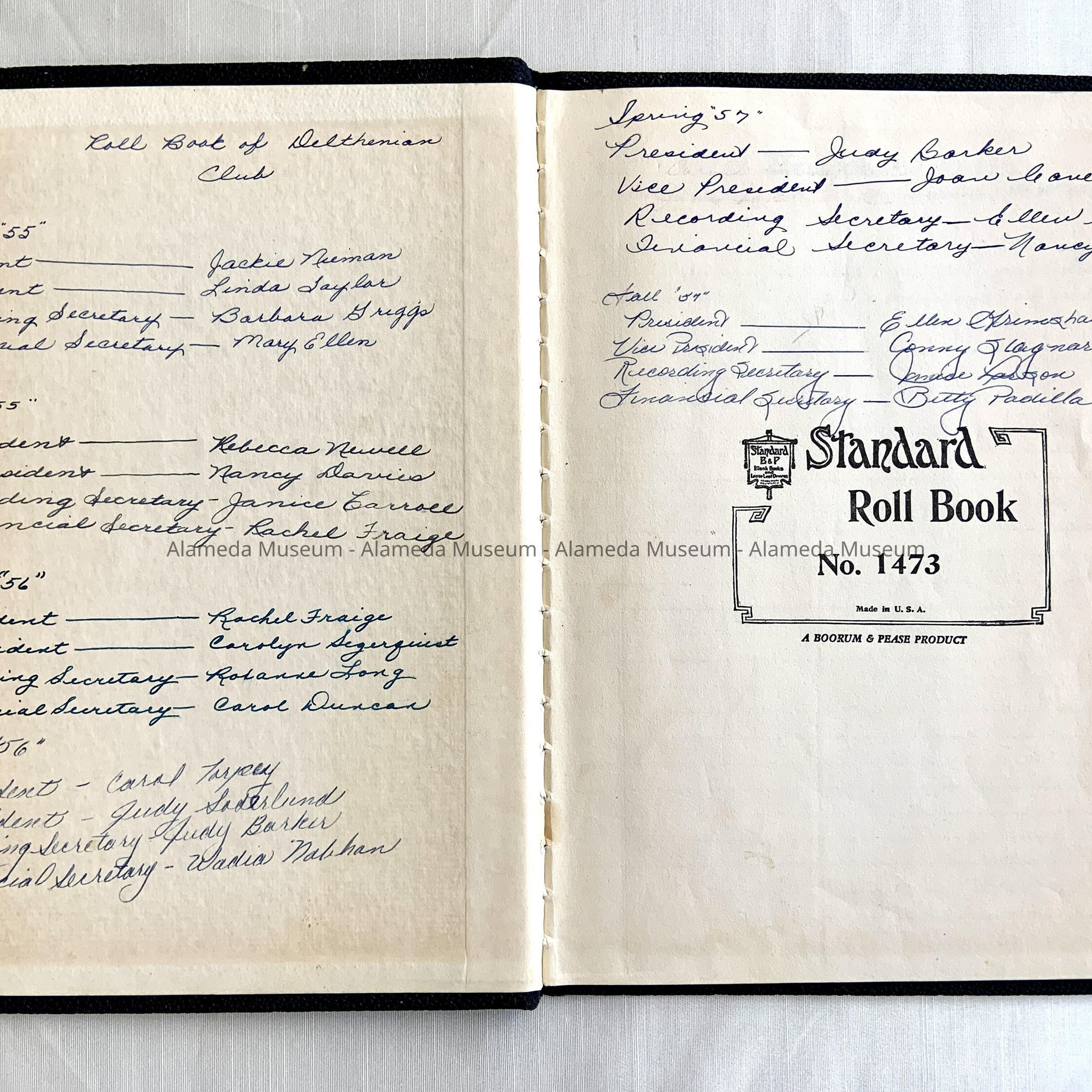 Roll book of the Delthenian club, Alameda High School, 1955-1957Entry/Object ID