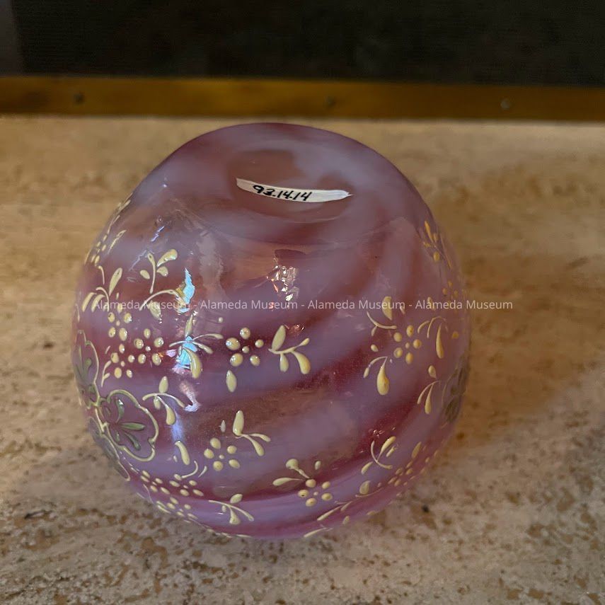 Rose Bowl with enameled pattern in green and yellow, 1890s-early 1900sEntry/Object ID