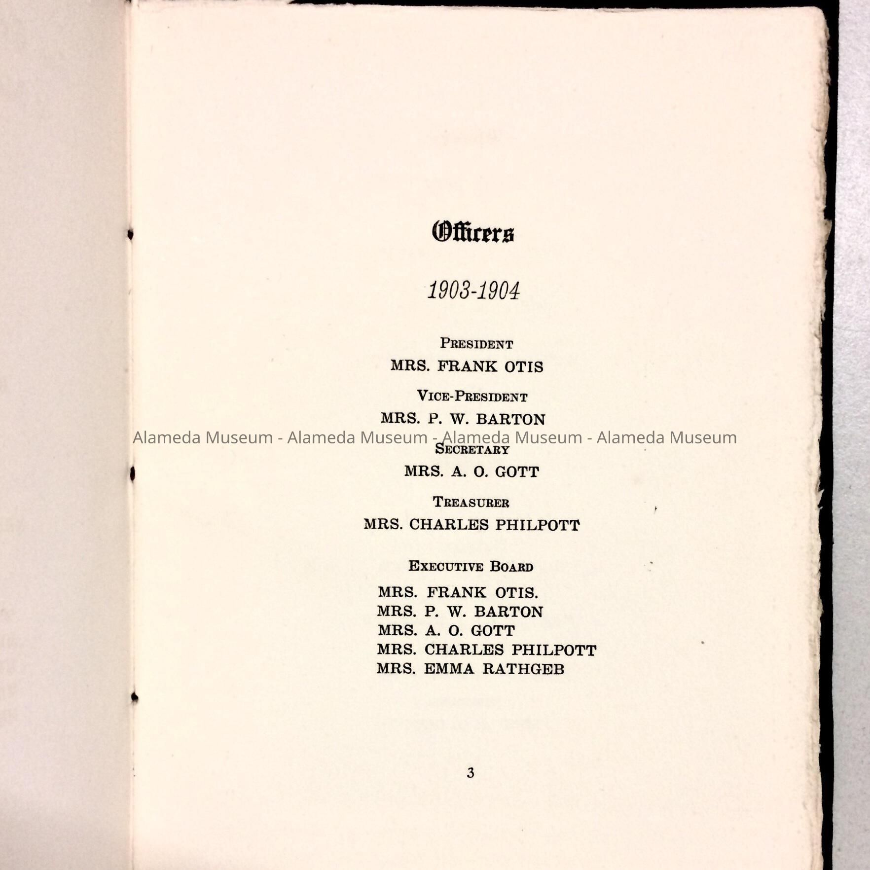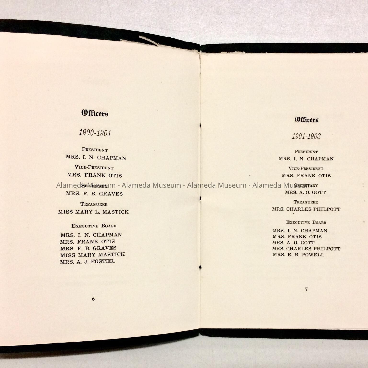 History of Object: Booklet containing a list of officers (present & past), membership, history, and rules & regulations of the Tea Club (Alameda), founded 1894.