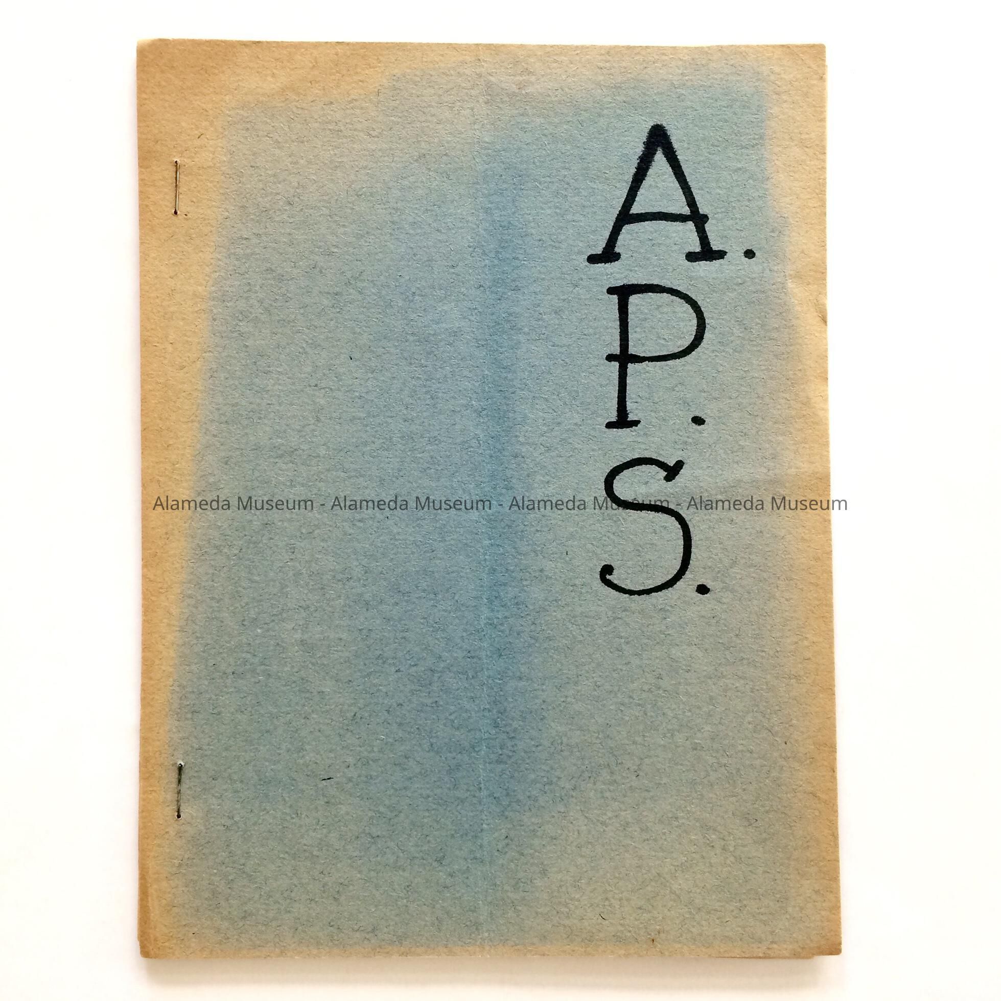 Description: Mimeographed six (6) page roster with cover of blue colored construction paper and handwritten caption "A.P.S." in black colored ink.