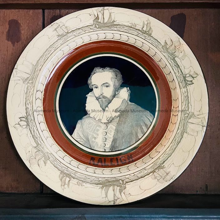 Royal Daulton plate with portrait of Sir Walter Raleigh and sailing ships, early 1900sEntry/Object ID