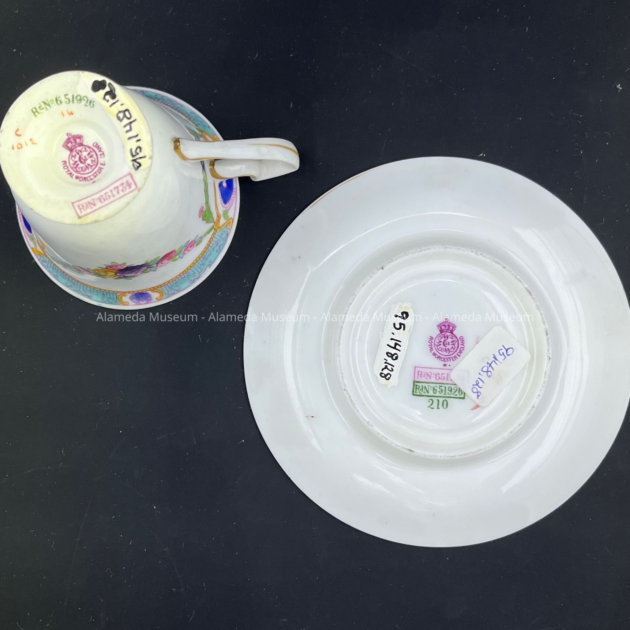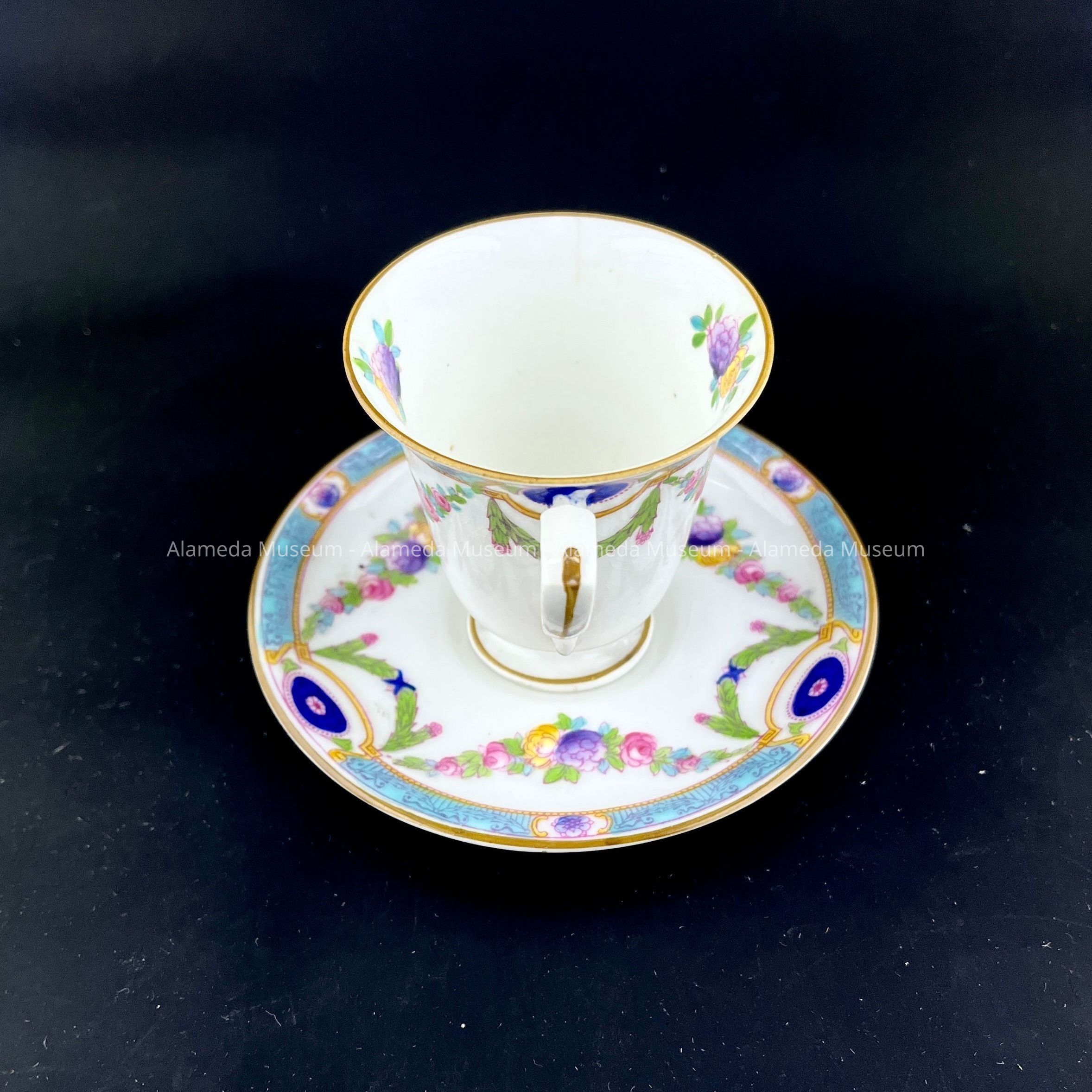 CUP AND SAUCER FROM THE BLAKE-DYER RESIDENCE, CLINTON AVENUE, ALAMEDA, CA.