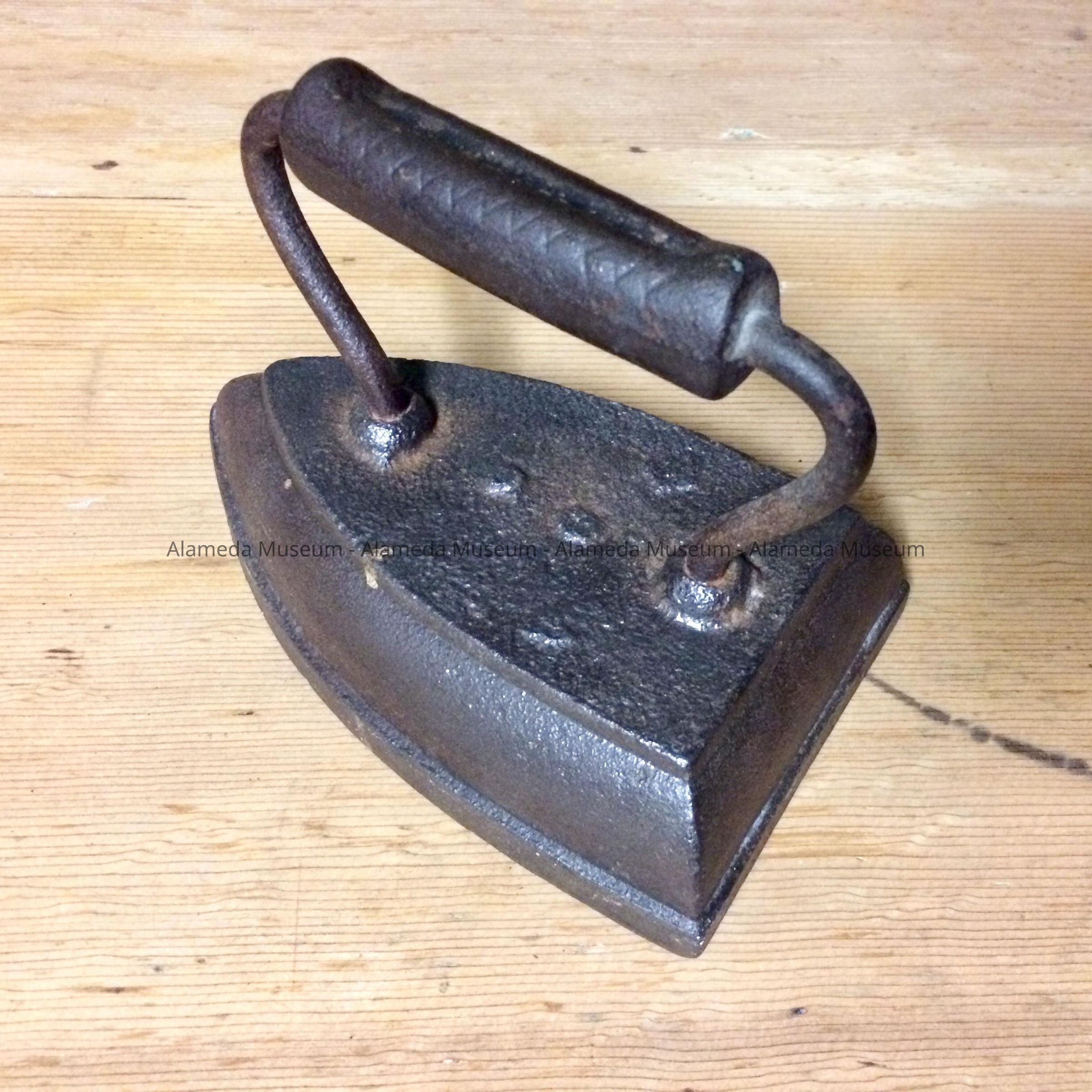 History of Object: Sad-iron of Annie Anderson Davies Cox, born Bay Farm Island, Alameda in 1886. It was found in the basement of the family home at 1611 Bay Street, Alameda (which the family has occupied since 1926).