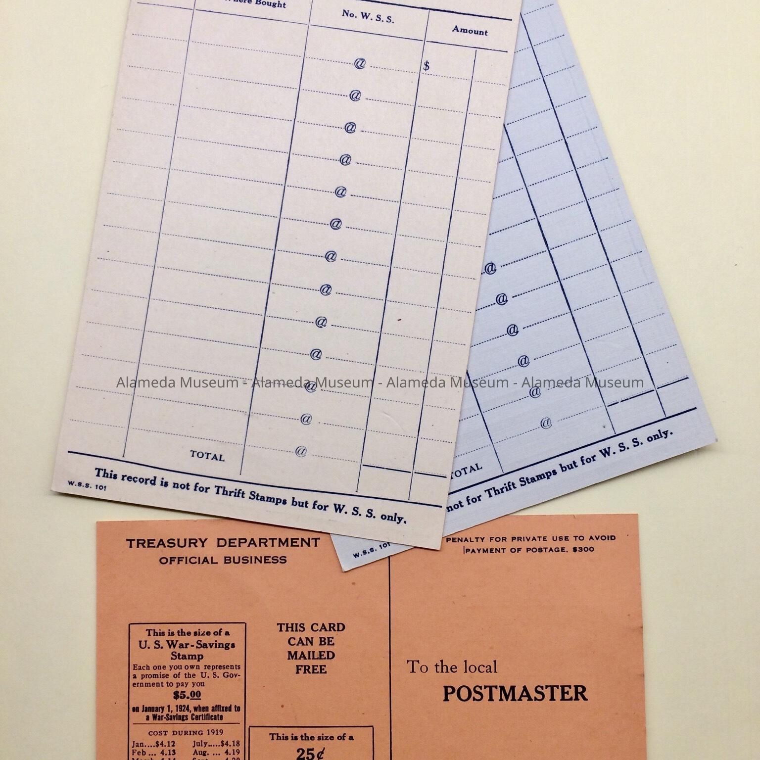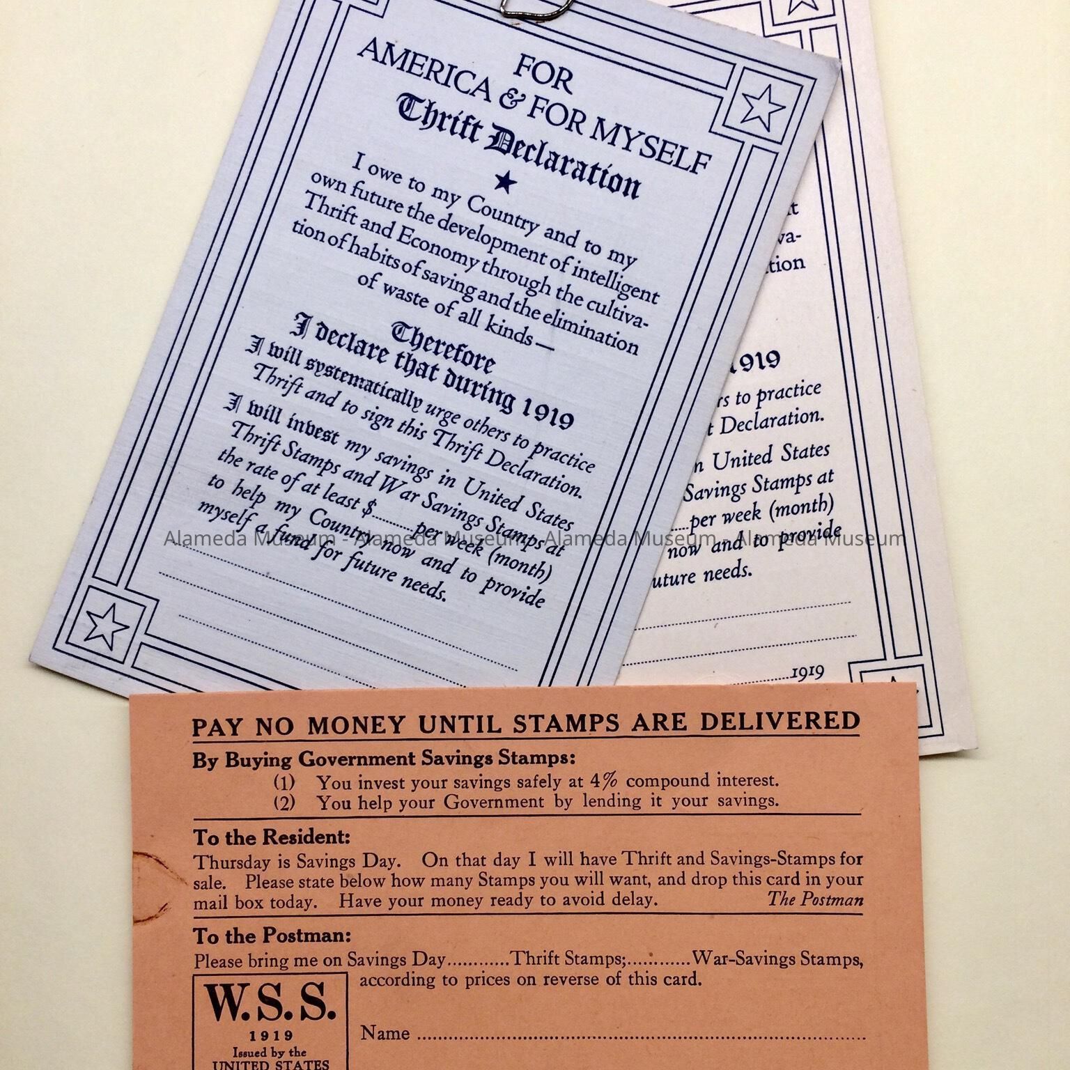 Sample Thrift Declaration and War Stamp Savings Forms, 1919Entry/Object ID