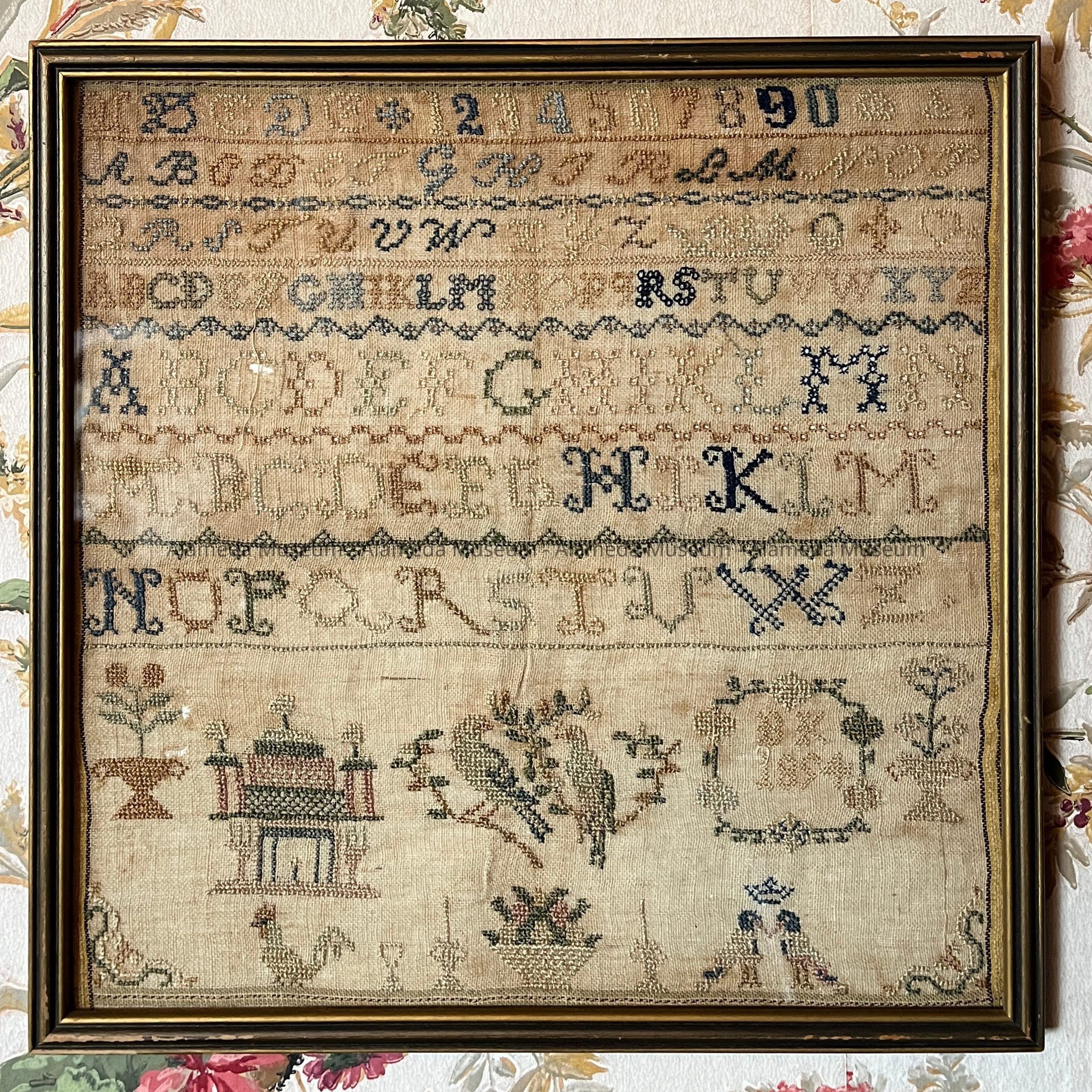 SAMPLER WAS FOUND IN THE DONOR'S HOME WHICH WAS PURCHASED IN 1953 AT 1509 ENCINAL AVENUE, ALAMEDA.