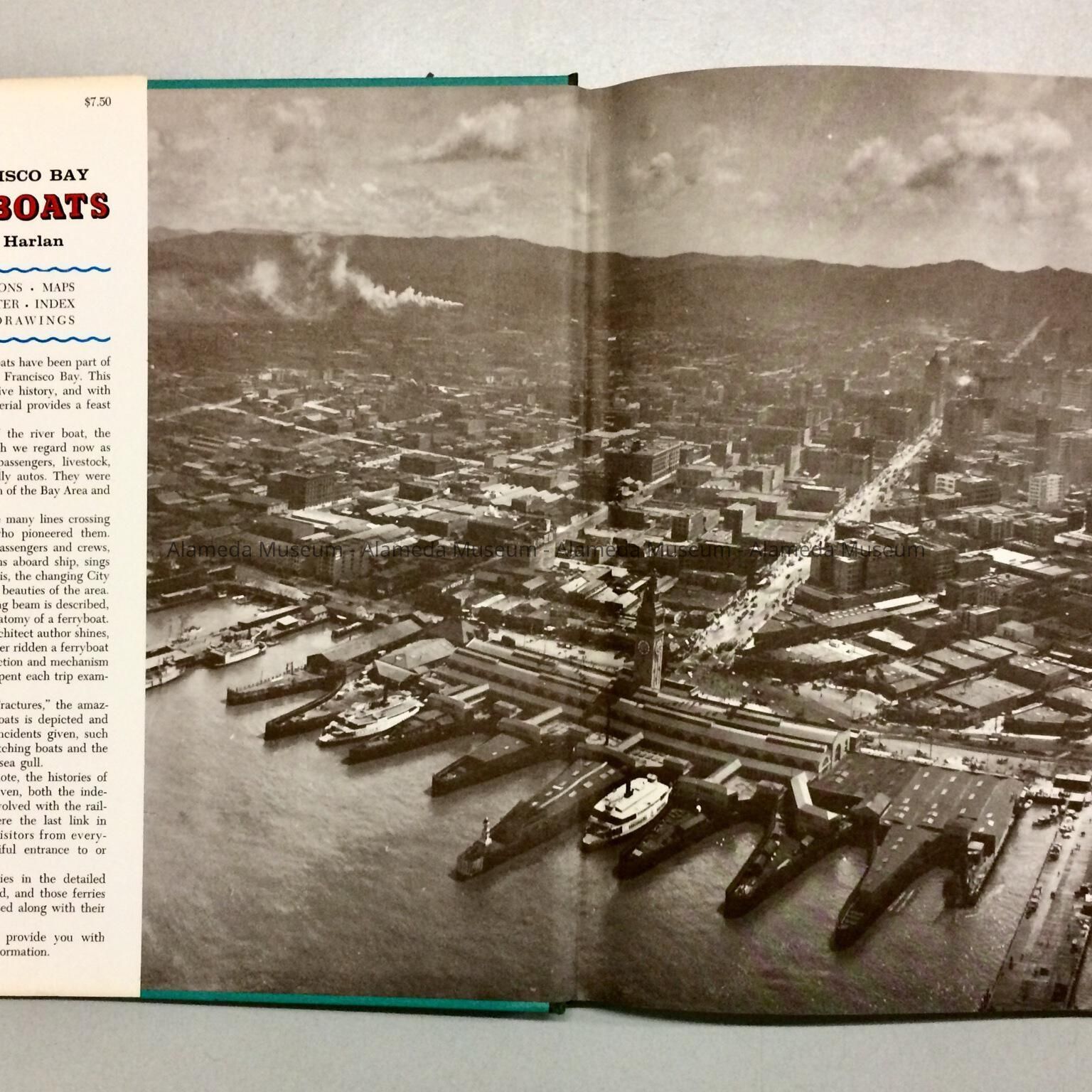 A HARD-BOUND BOOK, WITH ORIGINAL DUST JACKET. DUST JACKET HAS A COLORED PHOTO OF THE BAY BRIDGE AND FERRY BOAT. BOLD-PRINTED CAPTION READS, "SAN FRANCISCO BAY FERRY BOATS."