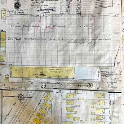History of Object: a copy of the Sanborn Maps for Alameda; these were used by insurance companies and the like, and were updated regularly with small sections that were to be glued on top of older maps. This book is missing the title page with overview map and corrections record. Connection to Alameda needs to be researched. Jack Lubbock was a member of the Board of Education in 1968.