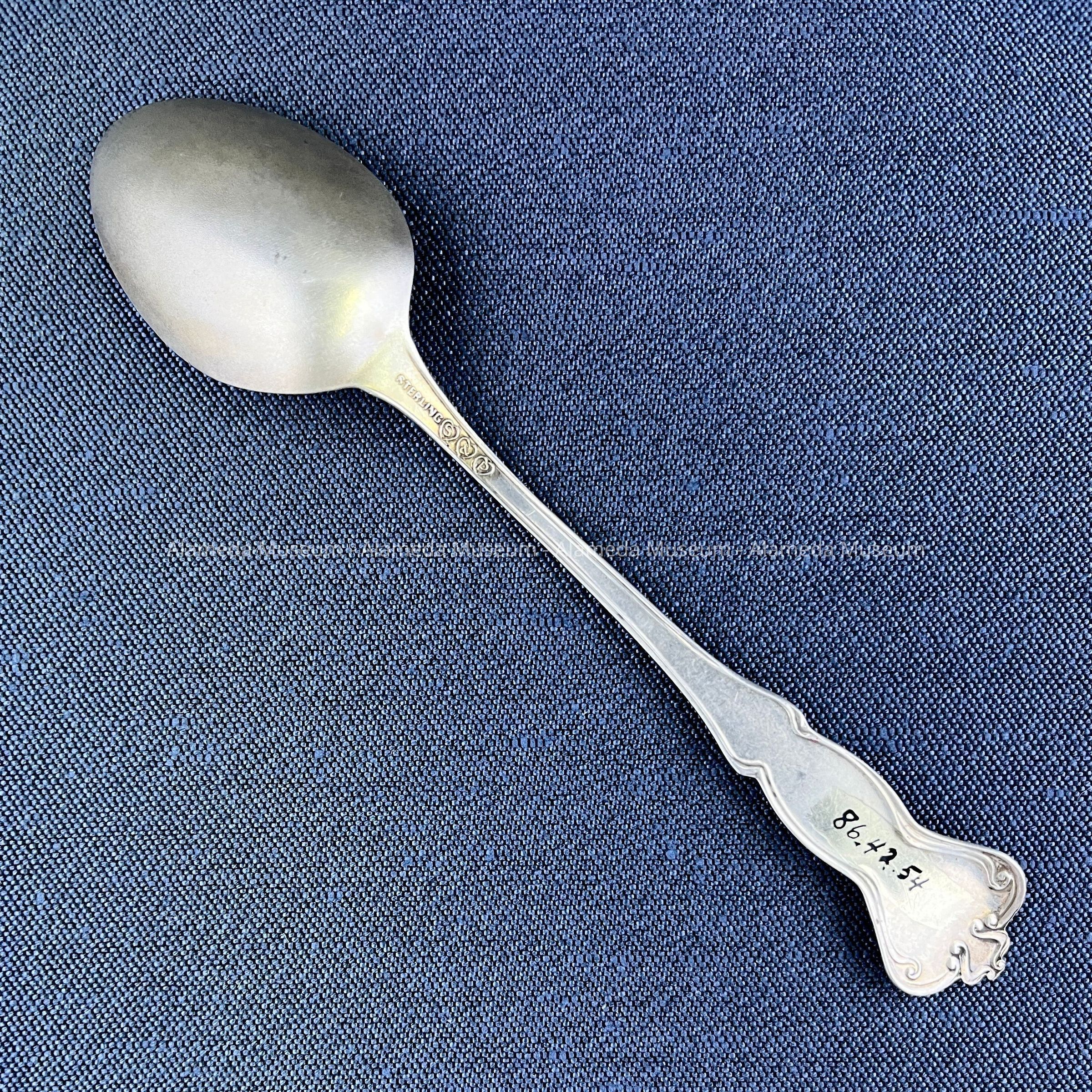 History of Object: Souvenir spoon of Santa Barbara Mission, California that belonged to the H. H. Meyers family, 2021 Alameda Avenue.