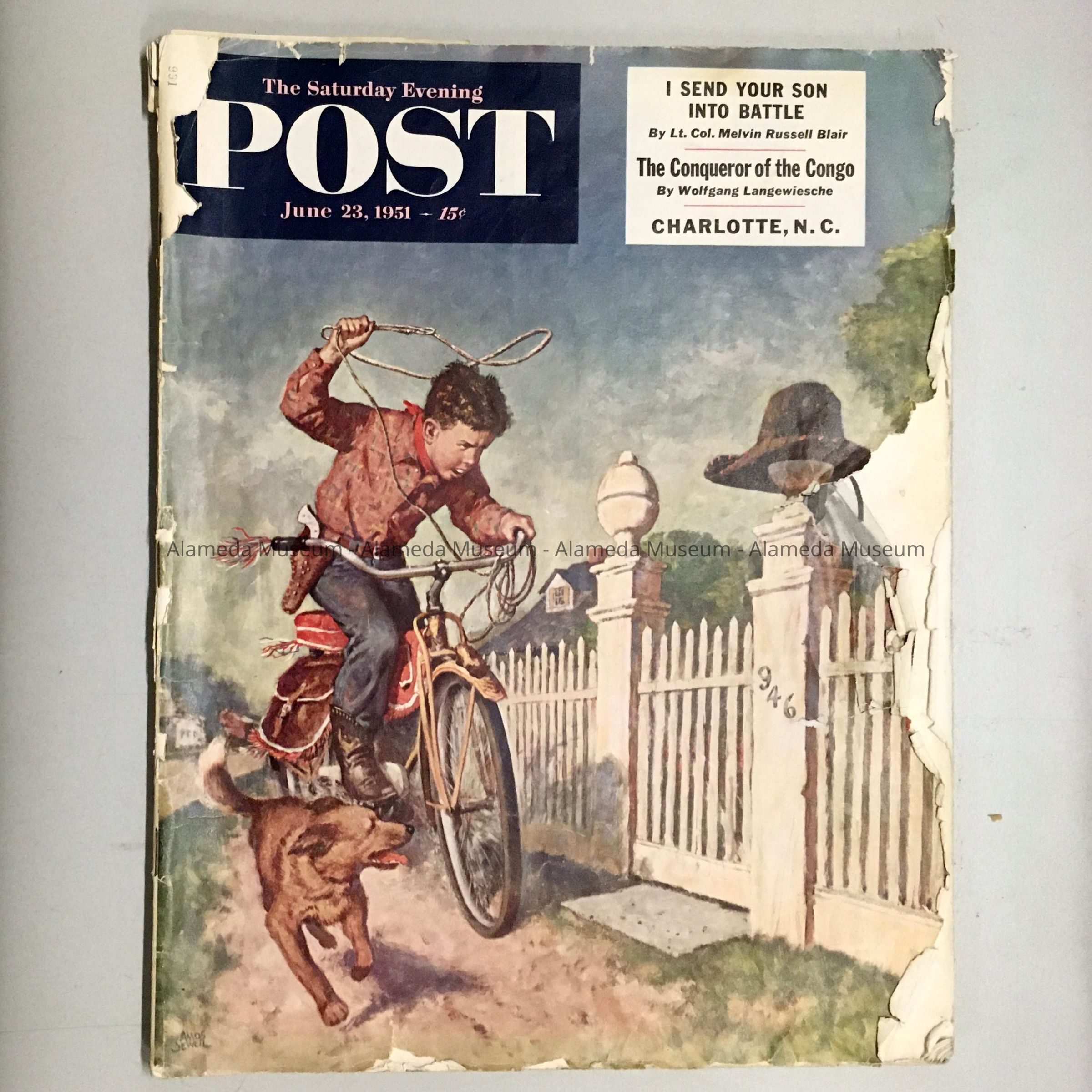 "SATURDAY EVENING POST" MAGAZINE EDITION, JUNE 23, 1951, WITH ILLUSTRATED COVER DEPICTING BOY ON BICYCLE.