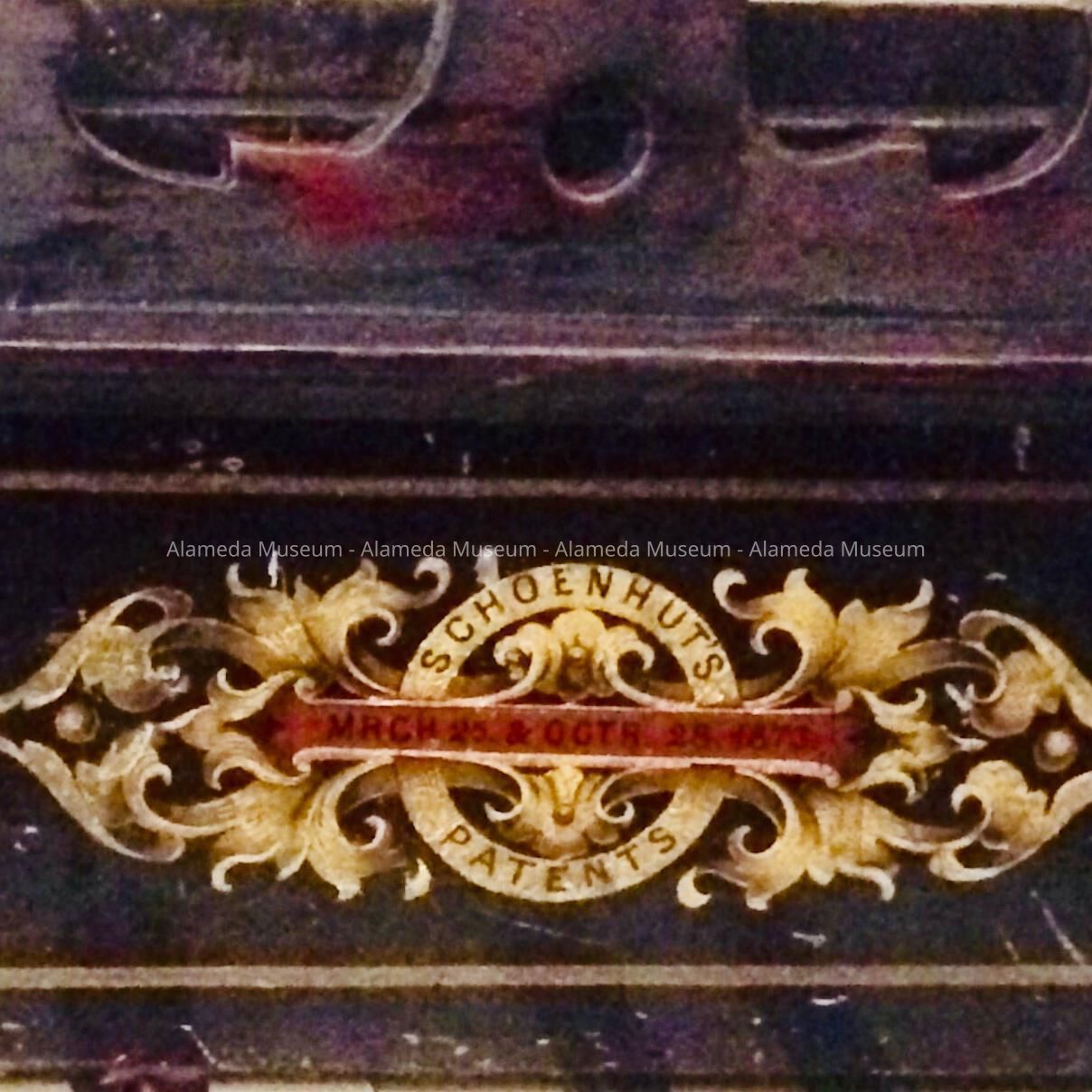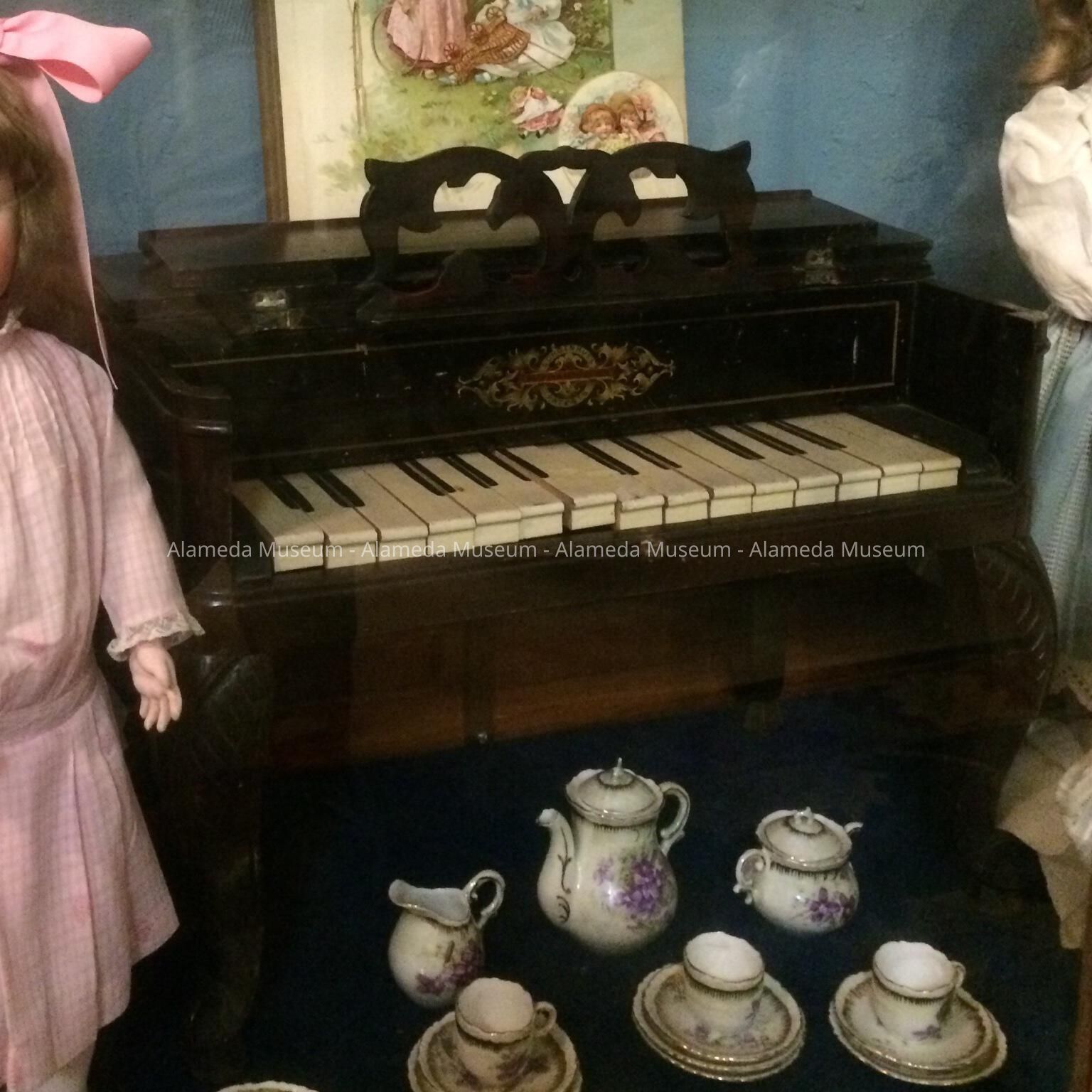 TOY PIANO, MANUFACTURED BY THE SCHOENHUT COMPANY, PATENTED 1873. PRESENTED TO BLANCH BLANC AND HER SISTER BY THEIR PARENTS, EARLY RESIDENTS OF ALAMEDA.