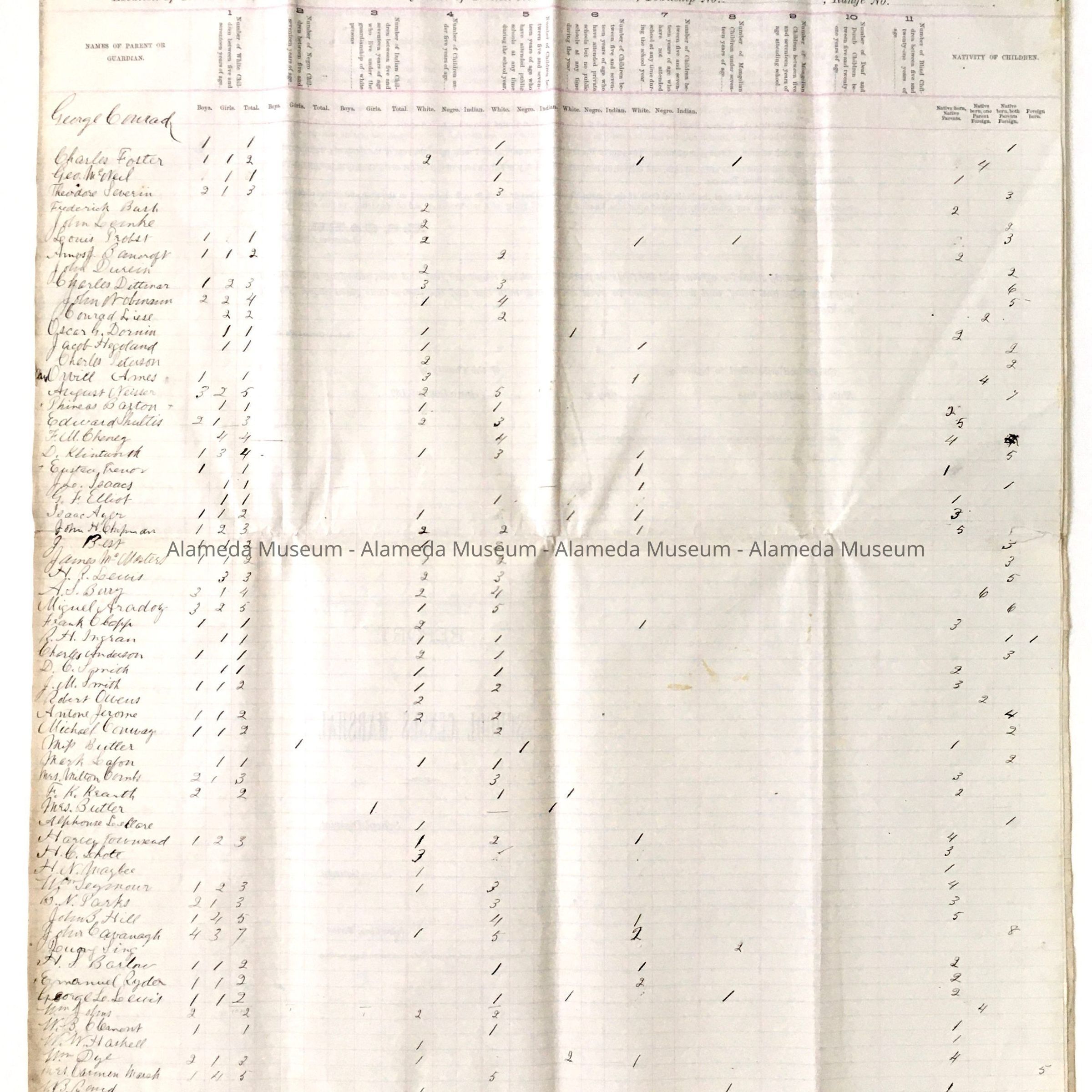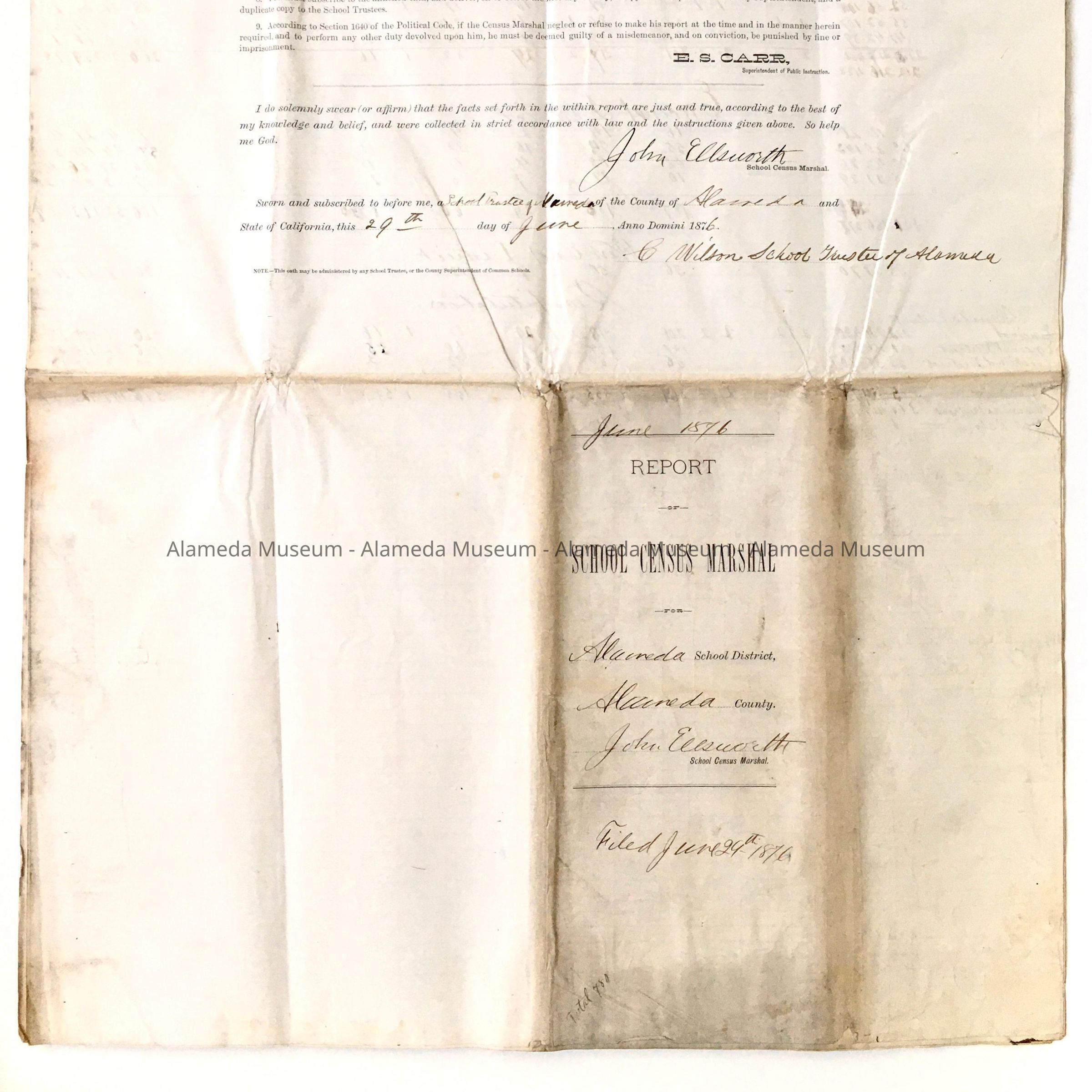 CENSUS REPORT FOR THE SCHOOL YEAR ENDING JUNE 30, 1876, CONCERNING STUDENTS WHO ATTENDED ALAMEDA PUBLIC SCHOOLS.