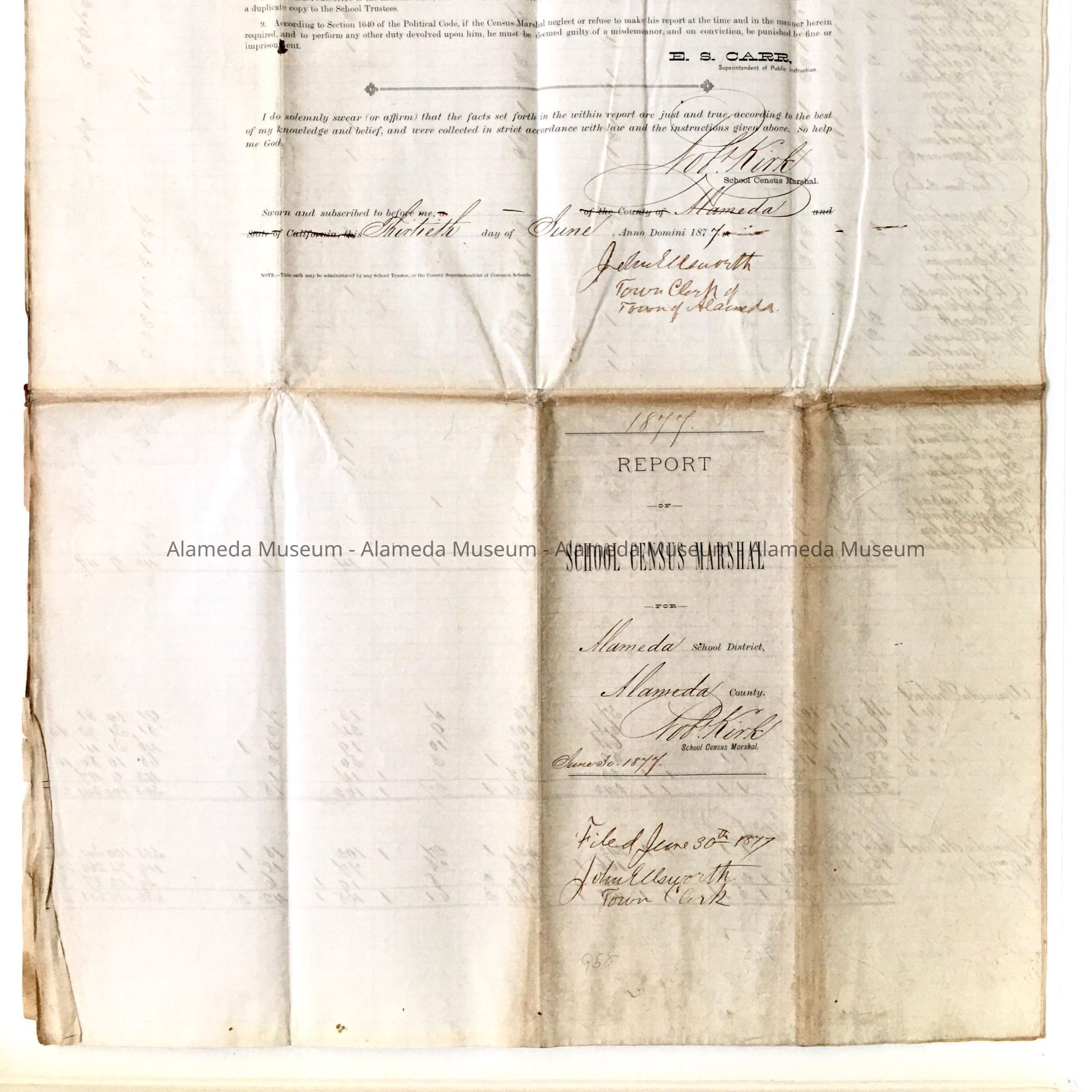 CENSUS REPORT FOR THE SCHOOL YEAR ENDING JUNE 30, 1877, CONCERNING STUDENTS WHO ATTENDED ALAMEDA PUBLIC SCHOOLS.