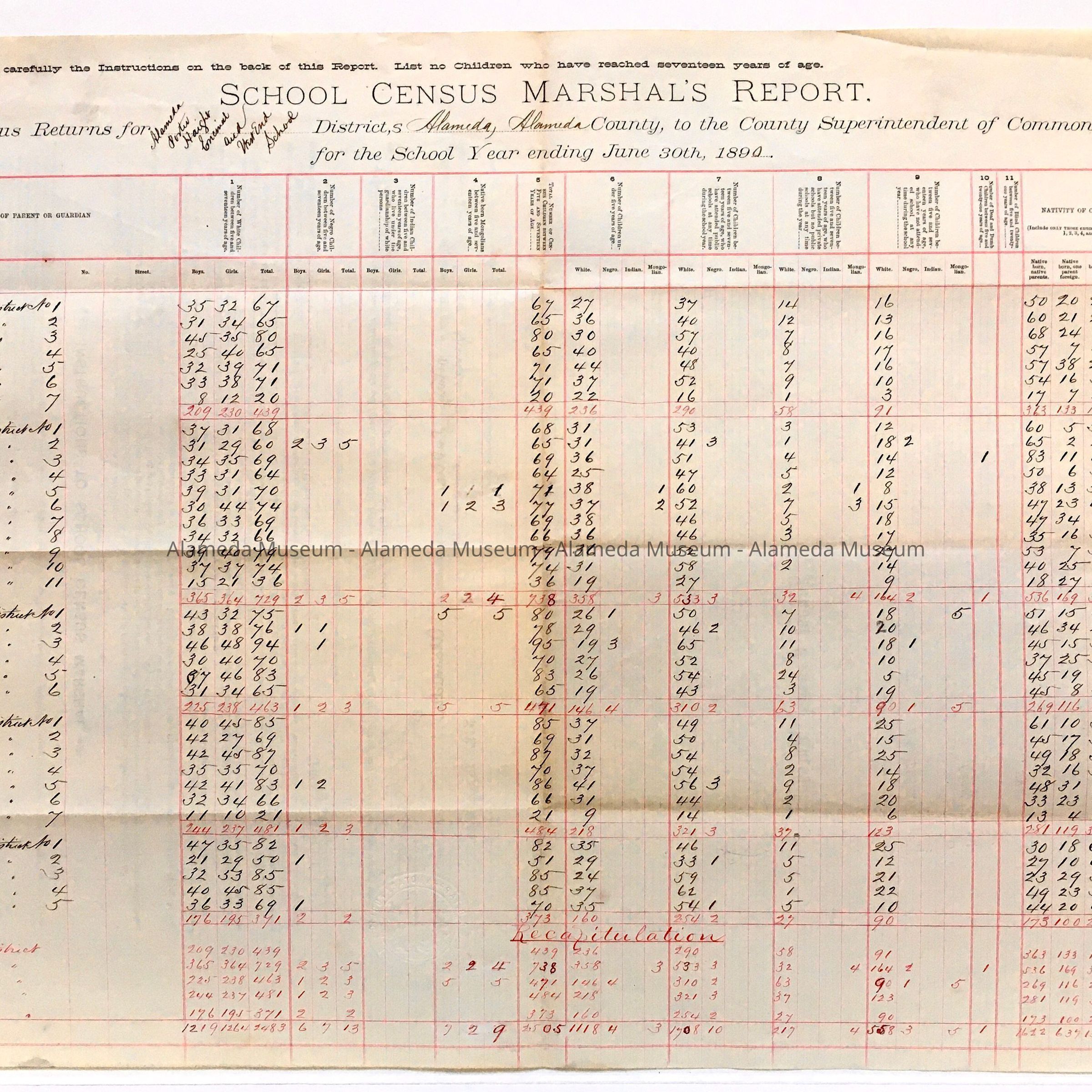 HISTORY OF OBJECT: SUMMARY REPORT FOR THE ALAMEDA SCHOOLS, PRESENTING A NUMBER OF THE BOYS AND GIRLS WHO ATTENDED THE INDIVIDUAL SCHOOLS.