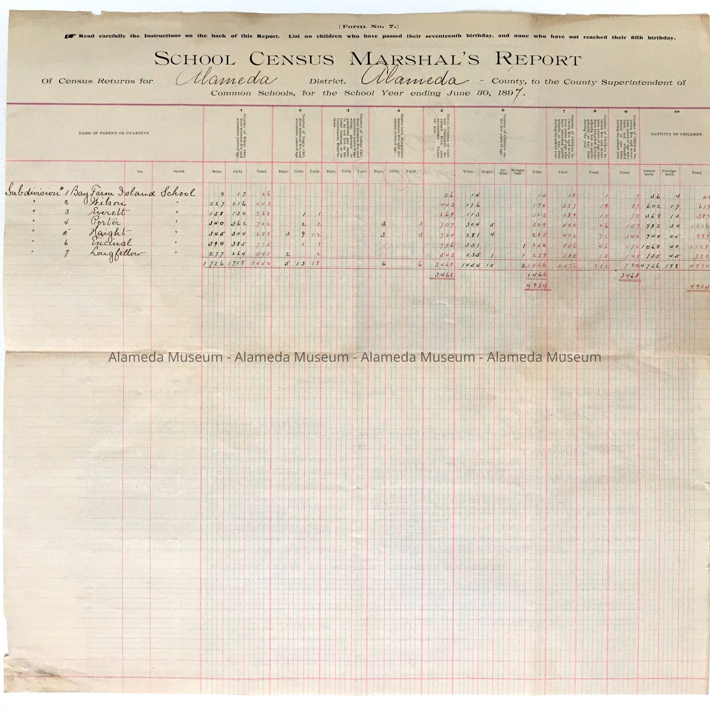 SUMMARY OF CENSUS DATA PERTAINING TO ALAMEDA PUBLIC SCHOOLS.