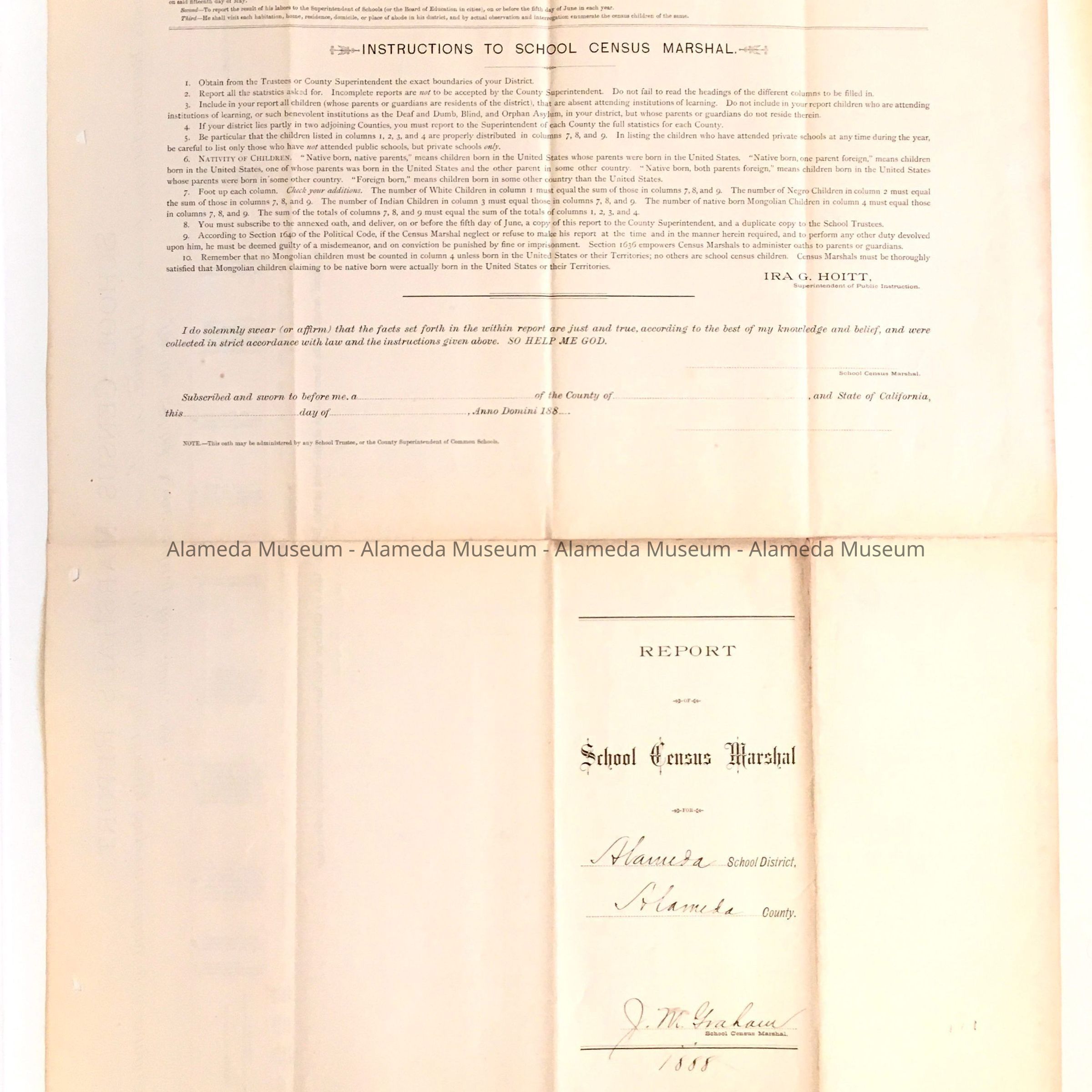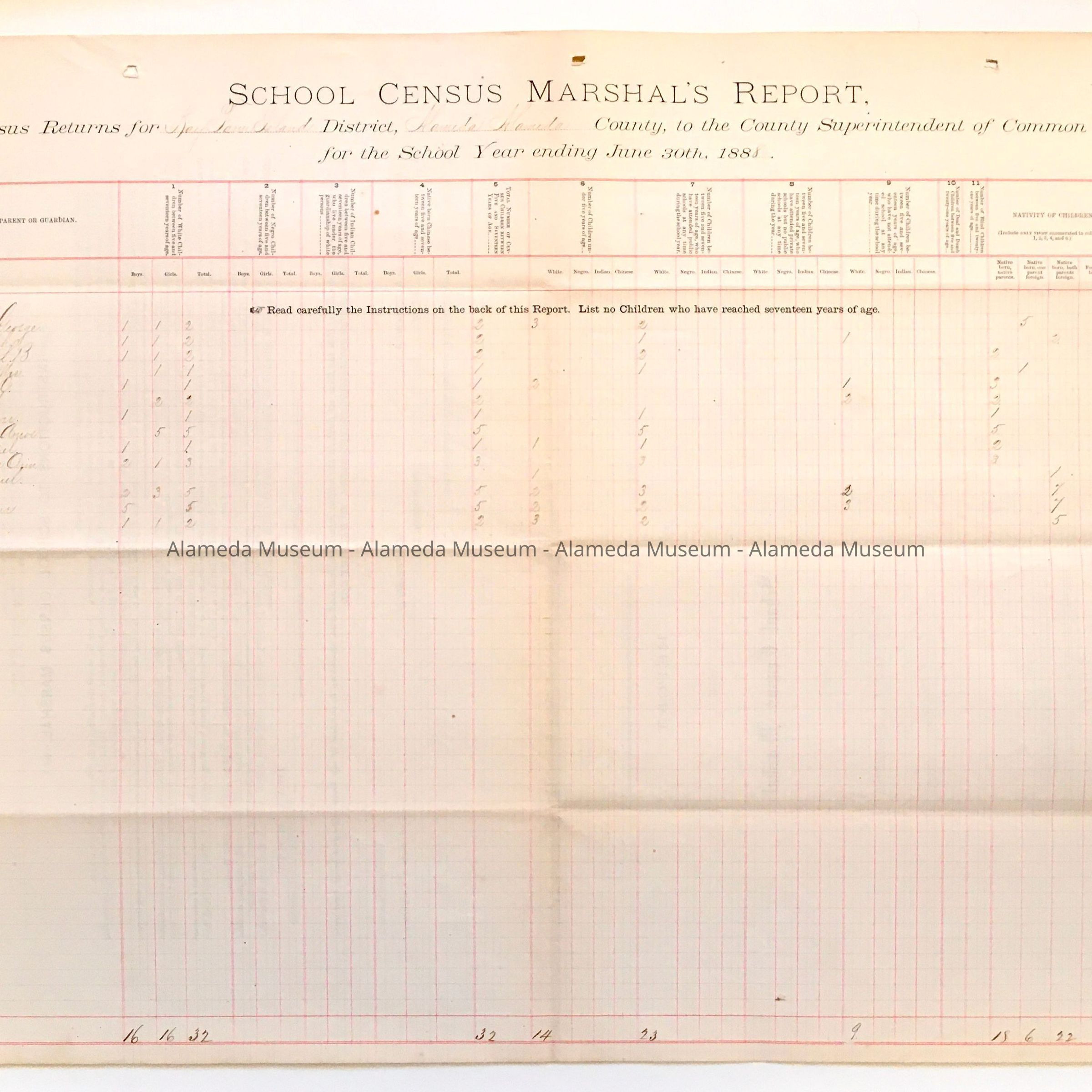 School Census Marshal's Report, Bay Farm Island School, 1888Entry/Object ID