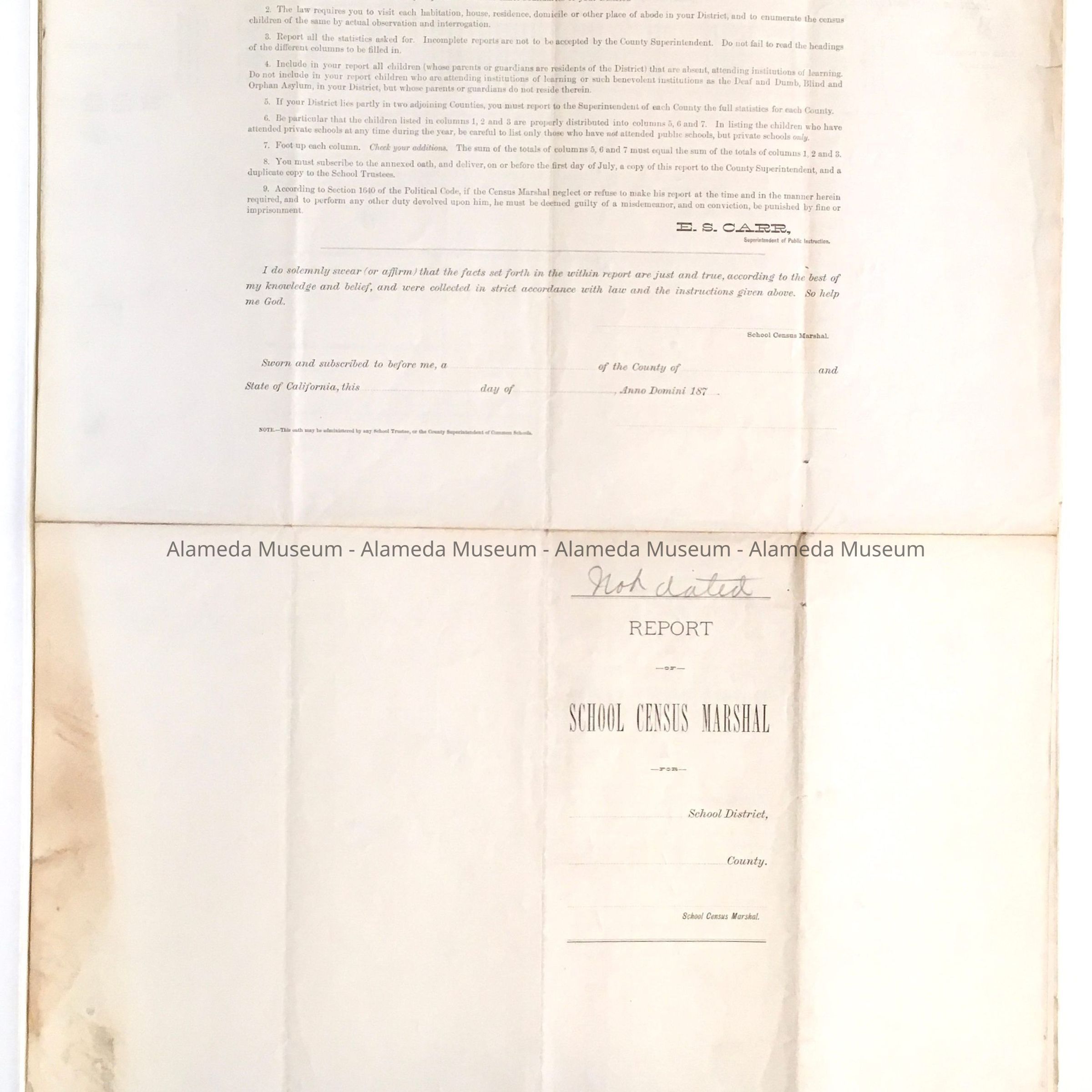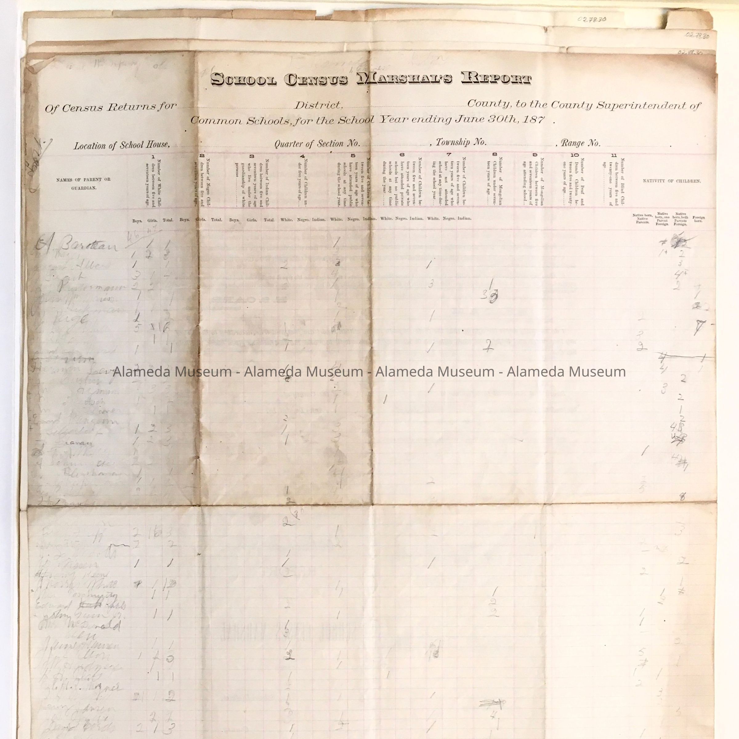 School Census Marshal's Report, c. 1870sEntry/Object ID